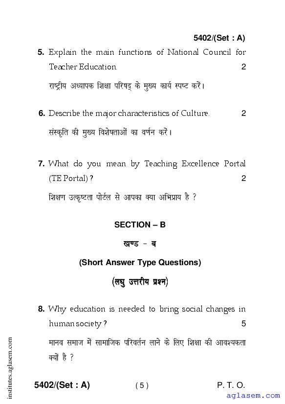 - Haryana D.El.Ed 1st Year Question Paper Contemporary Indian Society