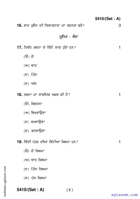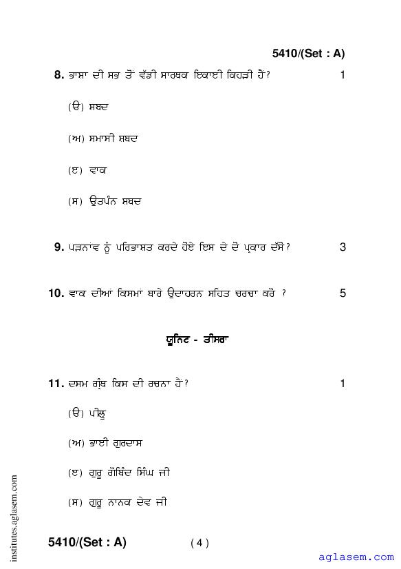 Haryana D.El.Ed 1st Year Question Paper Proficiency in Punjabi Language has been published after exam. Therefore you can now download the D.El.Ed 1st Year Question Paper PDF of Proficiency in Punjabi Language from here on aglasem. This Haryana D.El.Ed Question Paper is for the subject Proficiency in Punjabi Language which is taught in 1st Year of the DElEd curriculum in Haryana. Therefore it contains actual questions asked in previous years exams of the subject Proficiency in Punjabi Language held in Haryana DIETs, teaching institutes. So by solving this D.El.Ed previous year question paper, you can improve your 1st Year exam prep and aim to score full marks in Proficiency in Punjabi Language.