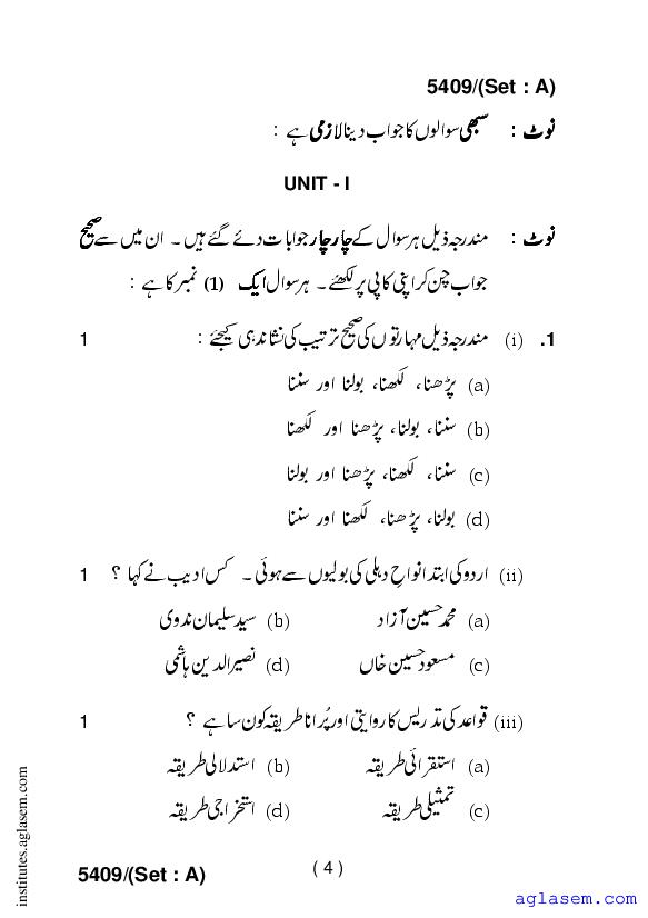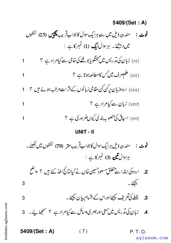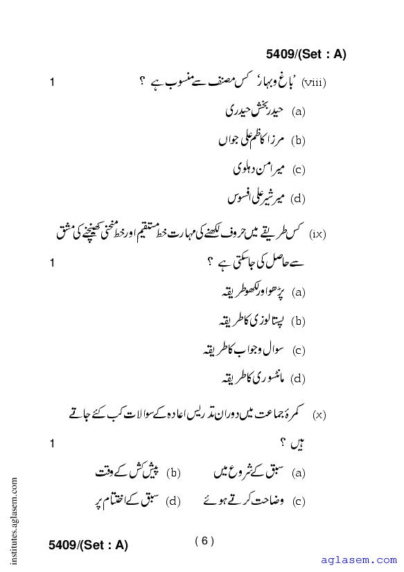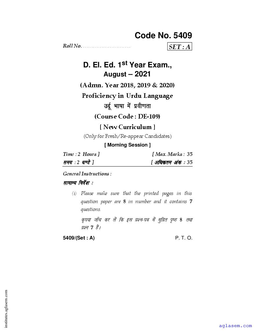 - Haryana D.El.Ed 1st Year Question Paper Proficiency in Urdu Language