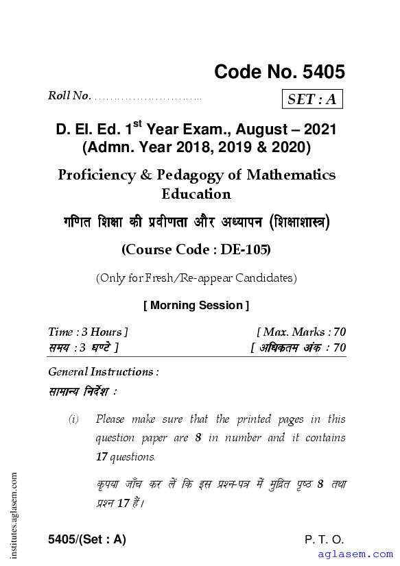 - Haryana D.El.Ed 1st Year Question Paper Proficiency & Pedagogy of Mathematics