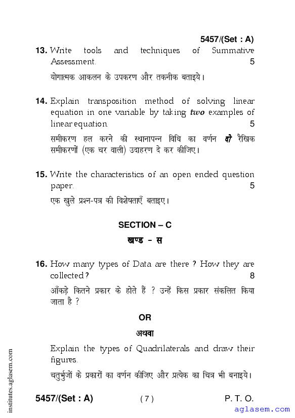- Haryana D.El.Ed 1st Year Question Paper Proficiency & Pedagogy of Mathematics