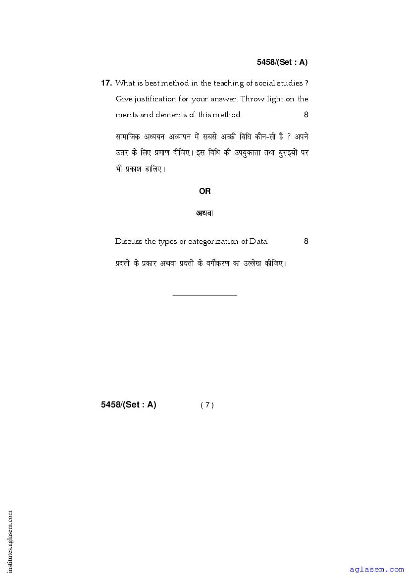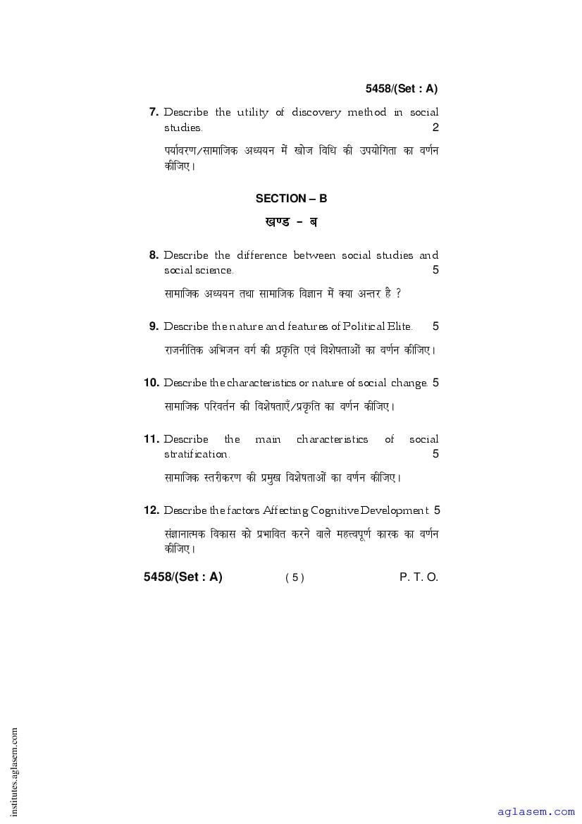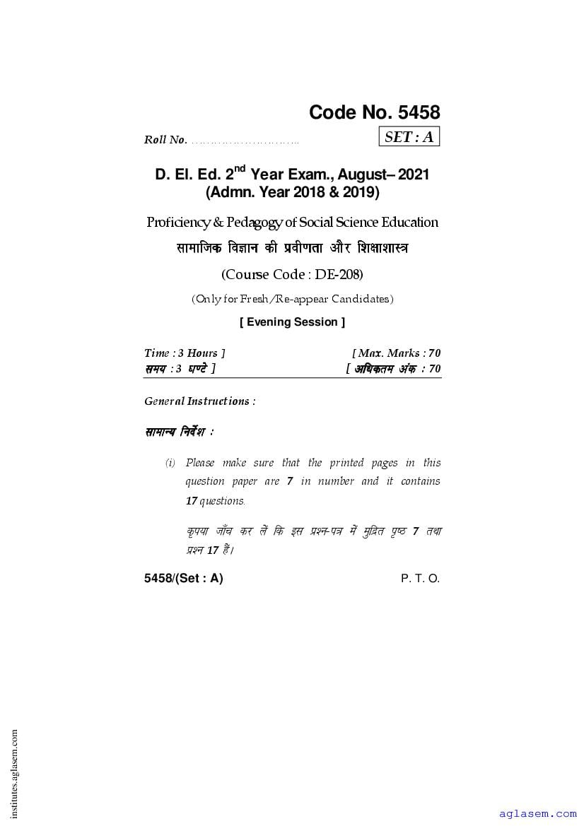 - Haryana D.El.Ed 2nd Year Question Paper Proficiency & Pedagogy of Social Science Education
