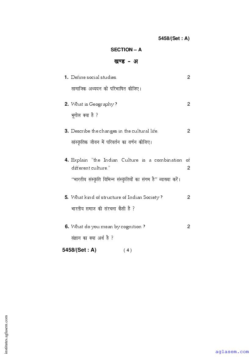- Haryana D.El.Ed 1st Year Question Paper Contemporary Indian Society