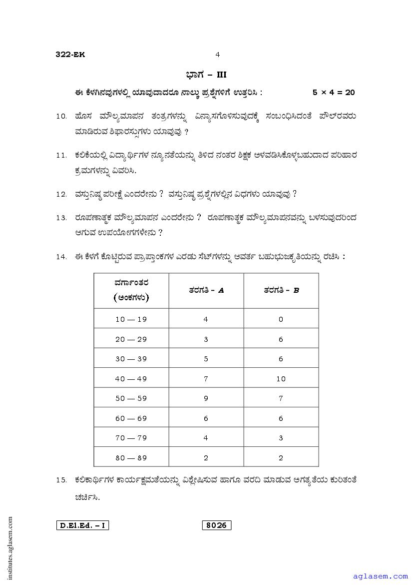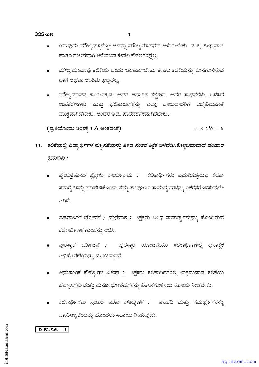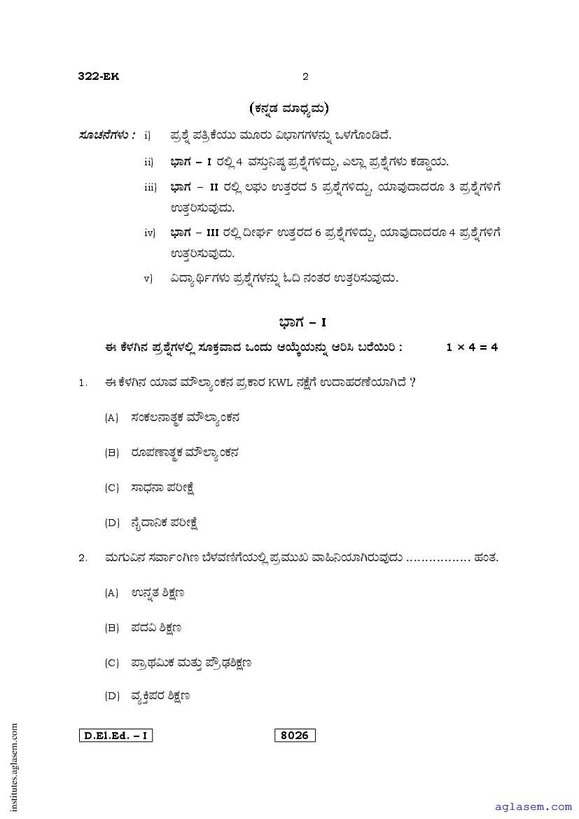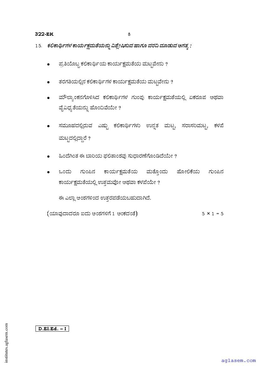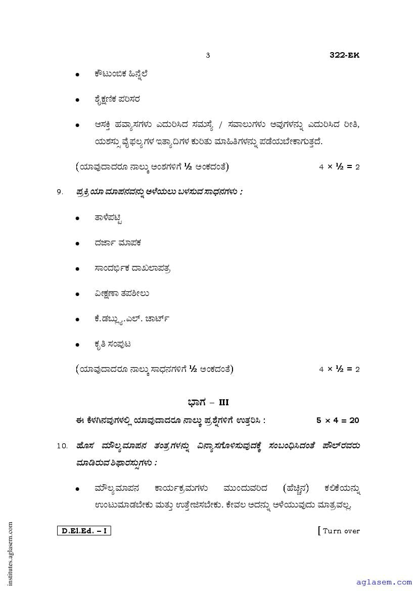 - Karnataka D.El.Ed 1st year Question Paper Kannada