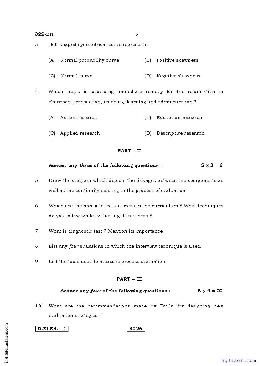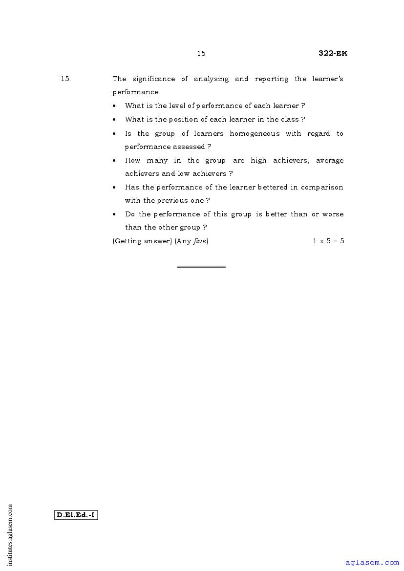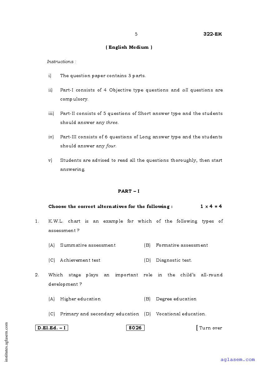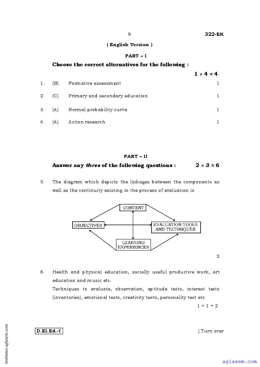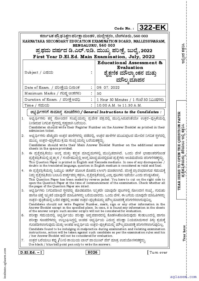 - Karnataka D.El.Ed 1st year Question Paper Educational Assessment & Evaluation