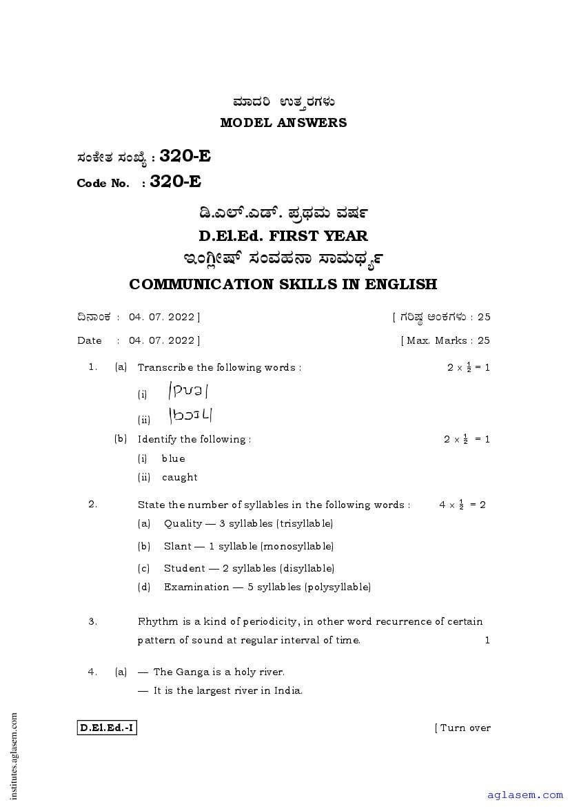 Karnataka D.El.Ed 1st Year Question Paper English has been published after exam. Therefore you can now download the D.El.Ed 1st Year Question Paper PDF of English from here on aglasem. This Karnataka D.El.Ed Question Paper is for the subject English which is taught in 1st Year of the DElEd curriculum in Karnataka. Therefore it contains actual questions asked in previous years exams of the subject English held in Karnataka DIETs, teaching institutes. So by solving this D.El.Ed previous year question paper, you can improve your 1st Year exam prep and aim to score full marks in English.