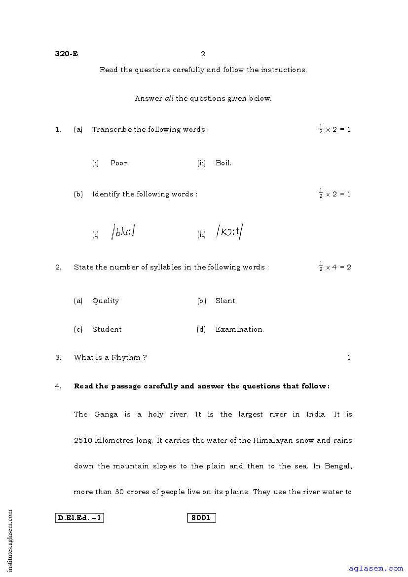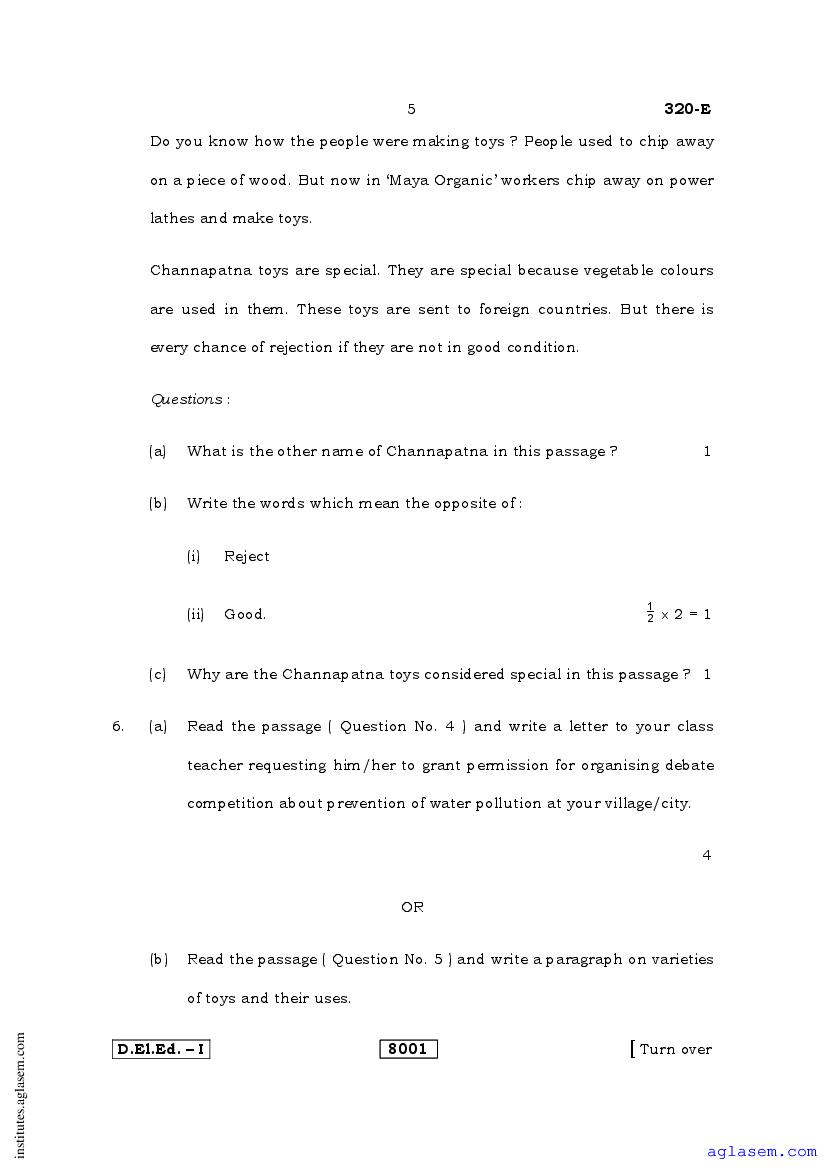 - Karnataka D.El.Ed 2nd year Question Paper English