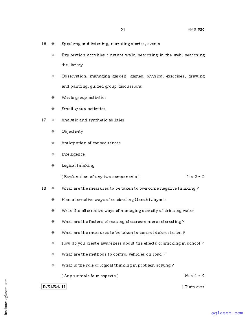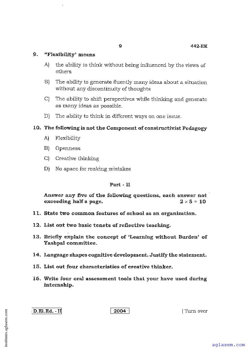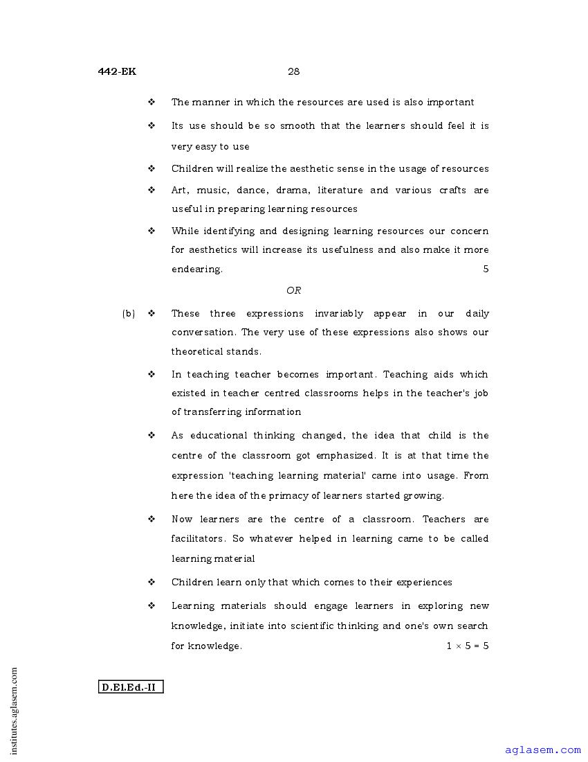 - Karnataka D.El.Ed 2nd year Question Paper Telugu
