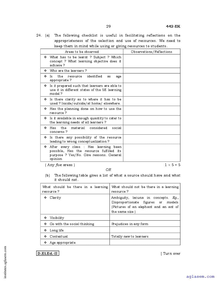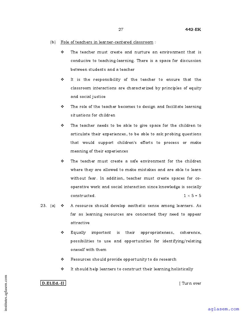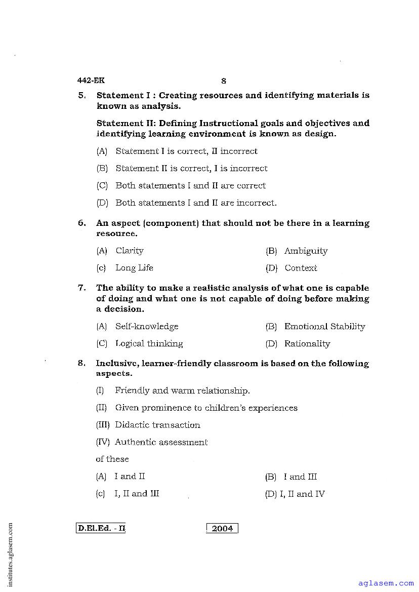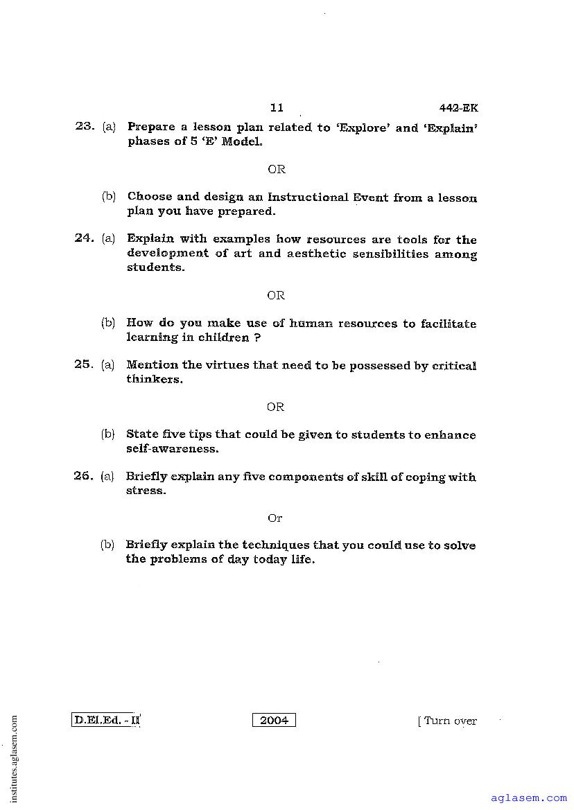 - Karnataka D.El.Ed 2nd year Question Paper Telugu