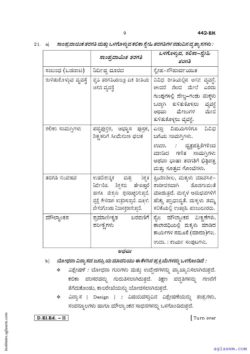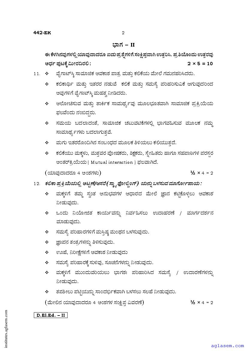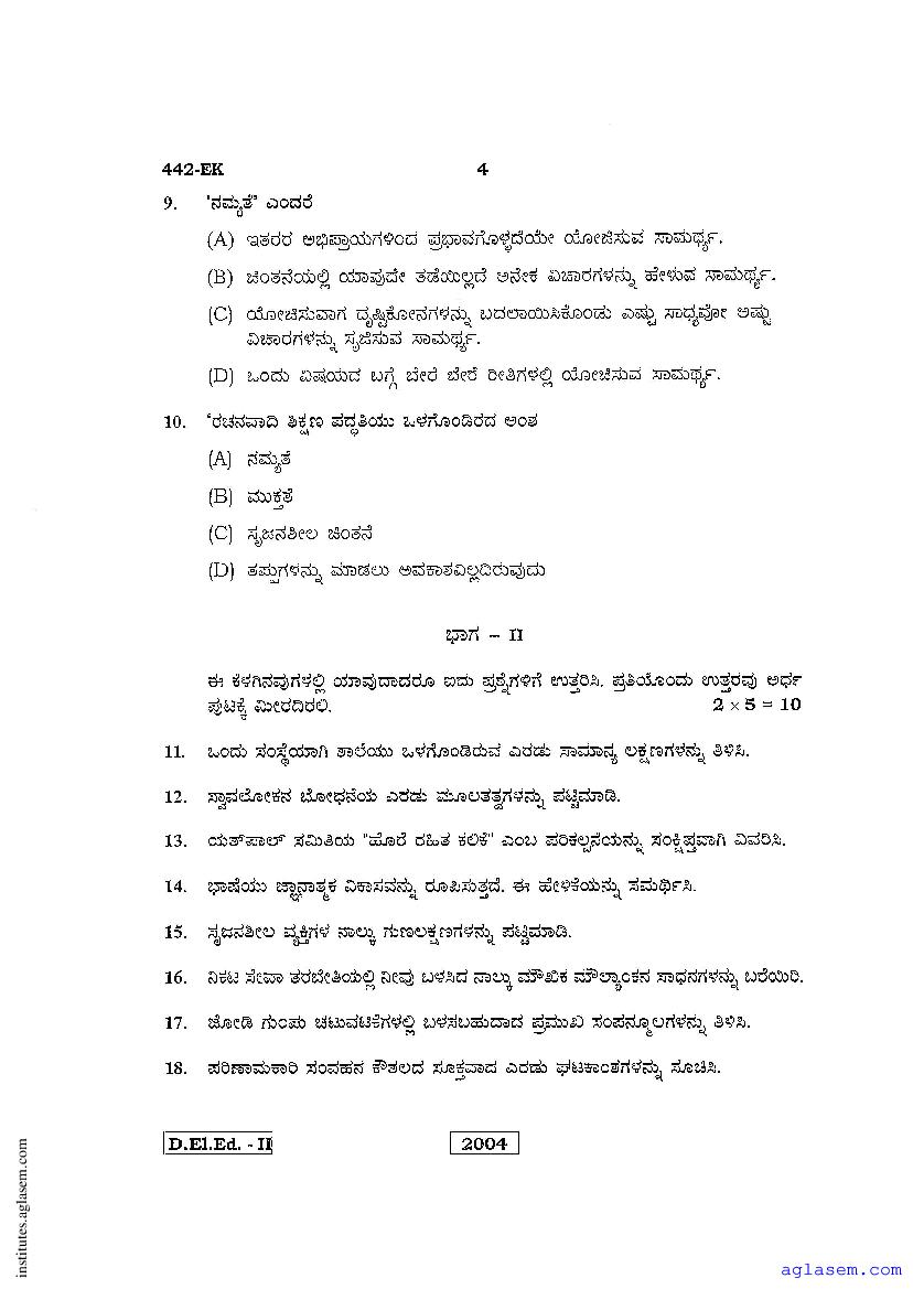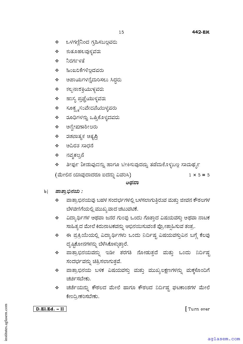 - Karnataka D.El.Ed 2nd year Question Paper Kannada