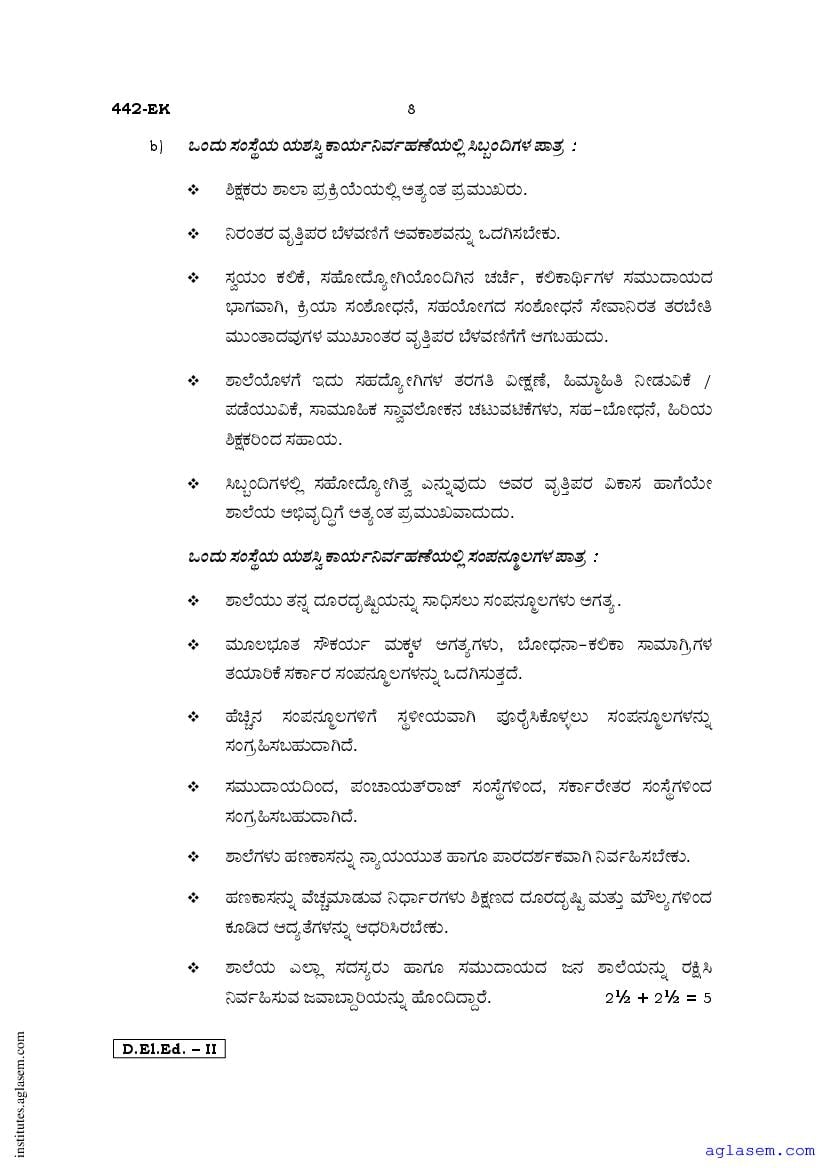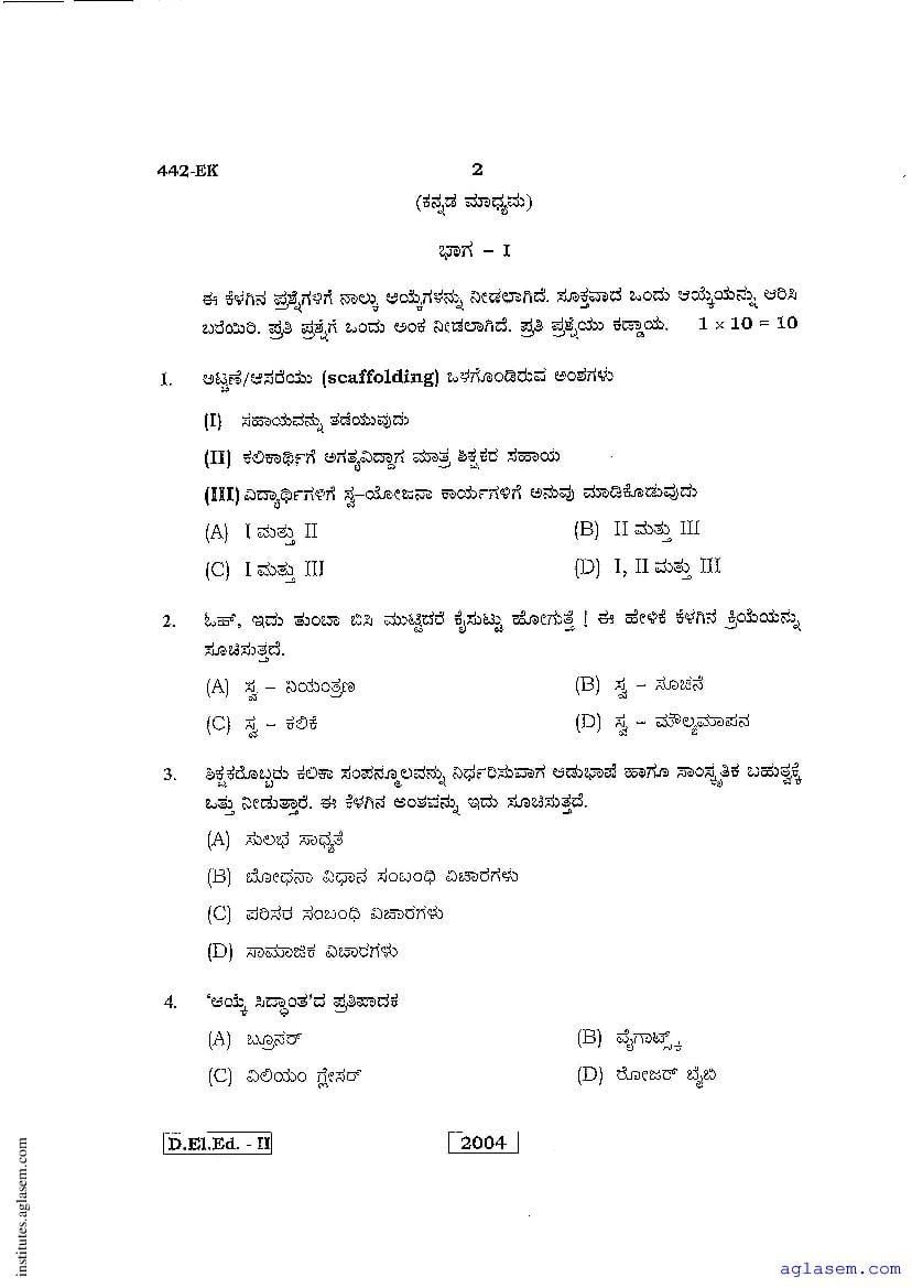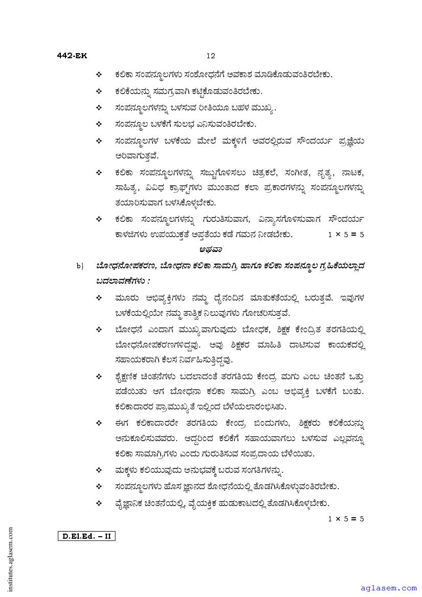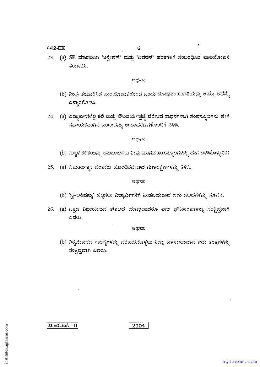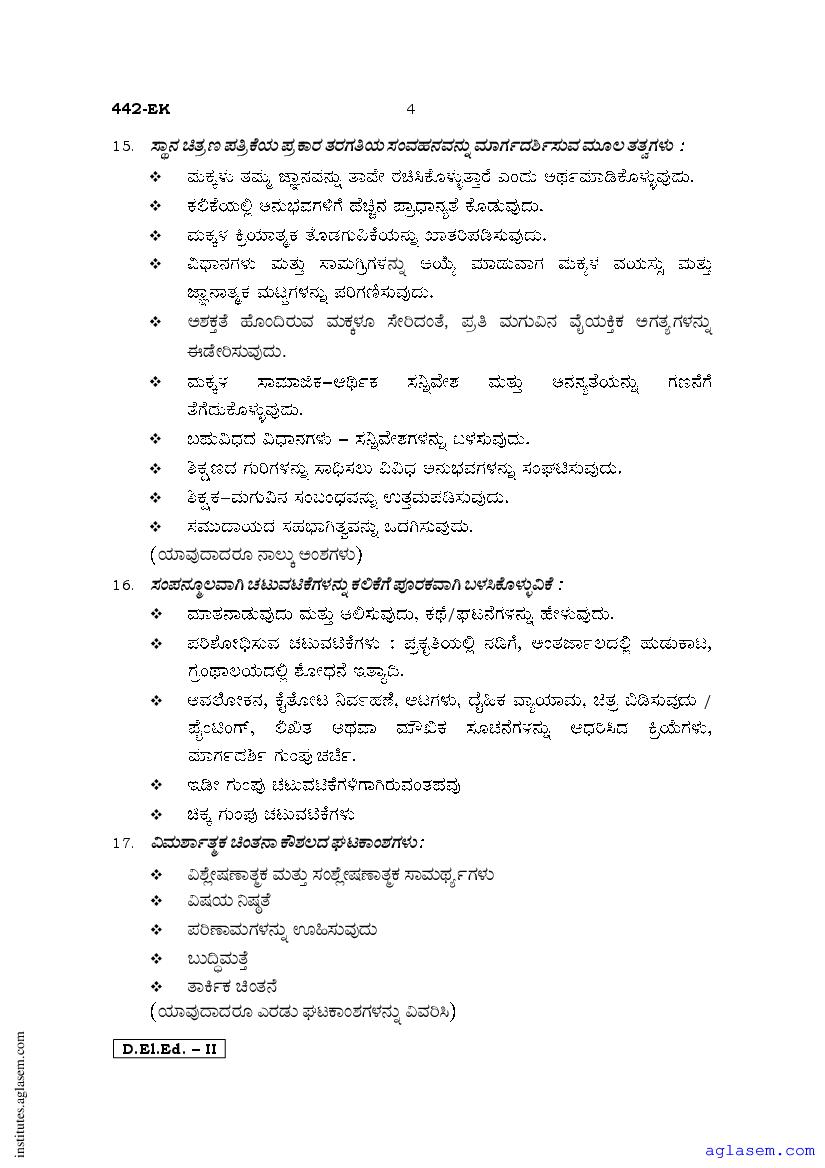 - Karnataka D.El.Ed 2nd year Question Paper Kannada