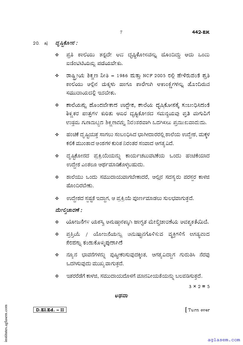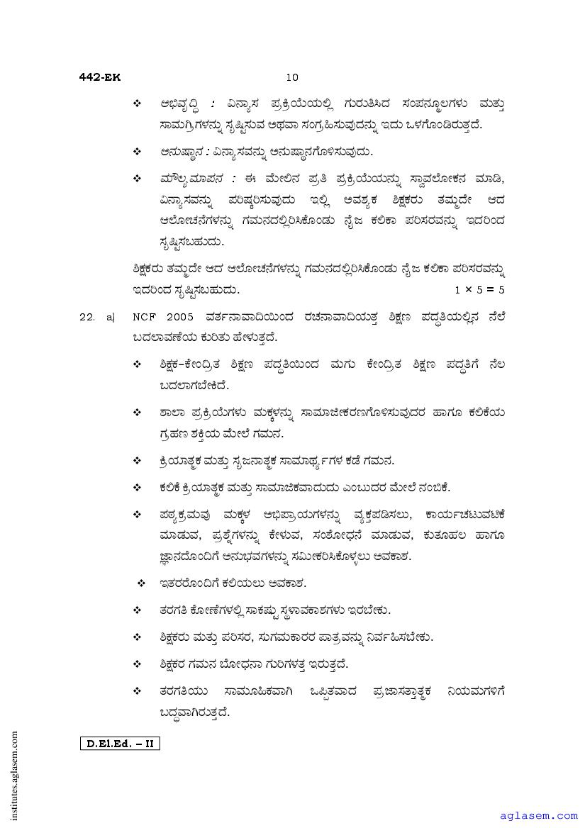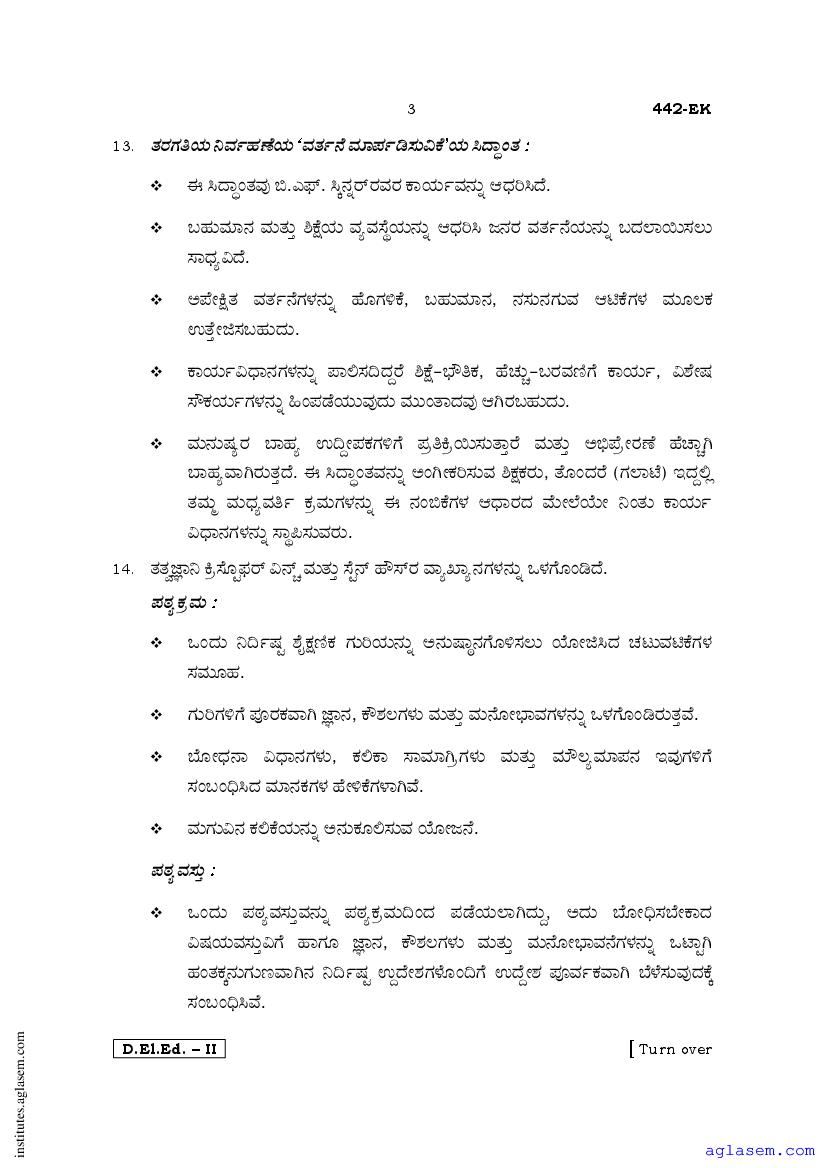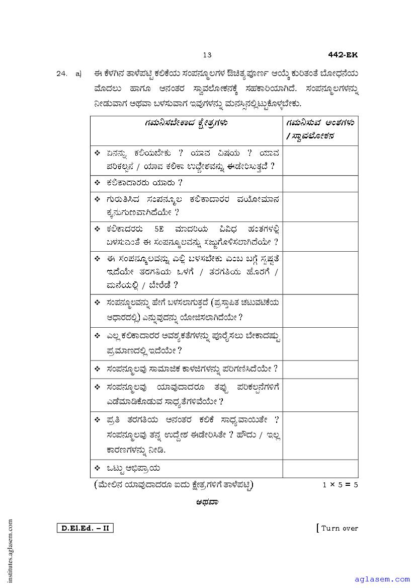 - Karnataka D.El.Ed 2nd year Question Paper Kannada