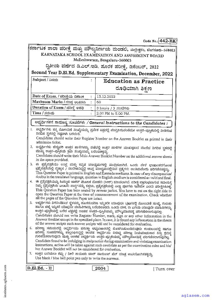 | Paper Here | Education as Practice Question Paper of Karnataka D.El.Ed 2nd Year |