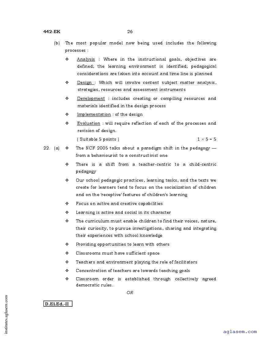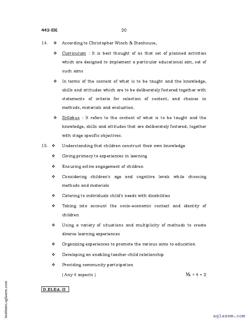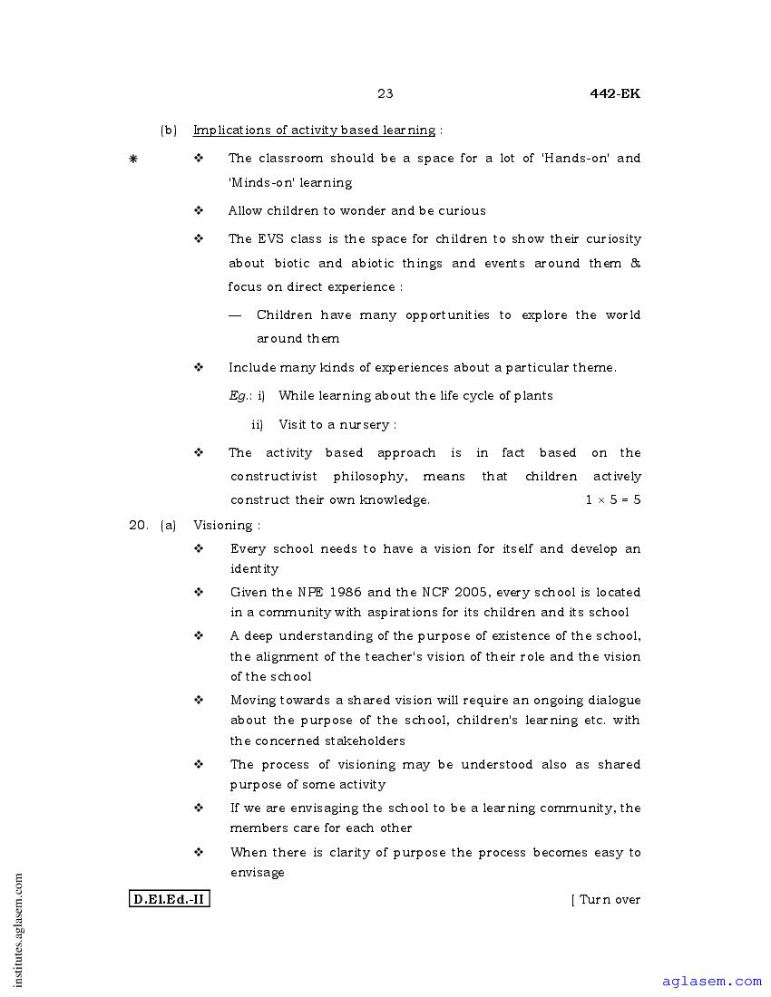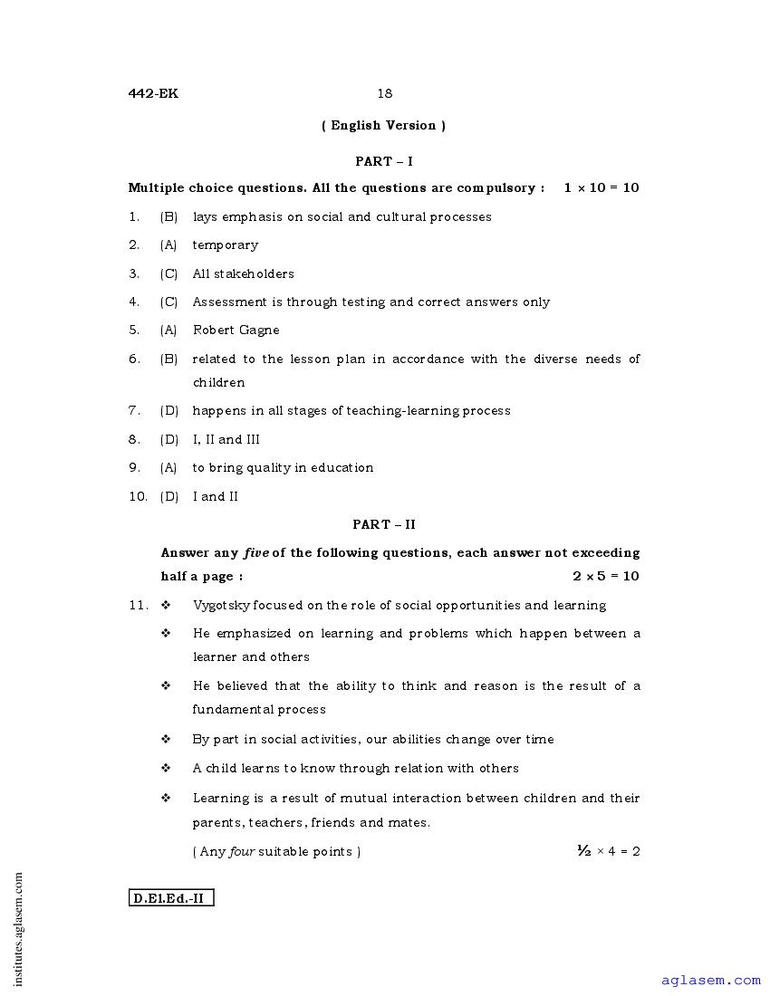 - Karnataka D.El.Ed 2nd year Question Paper Education as Practice