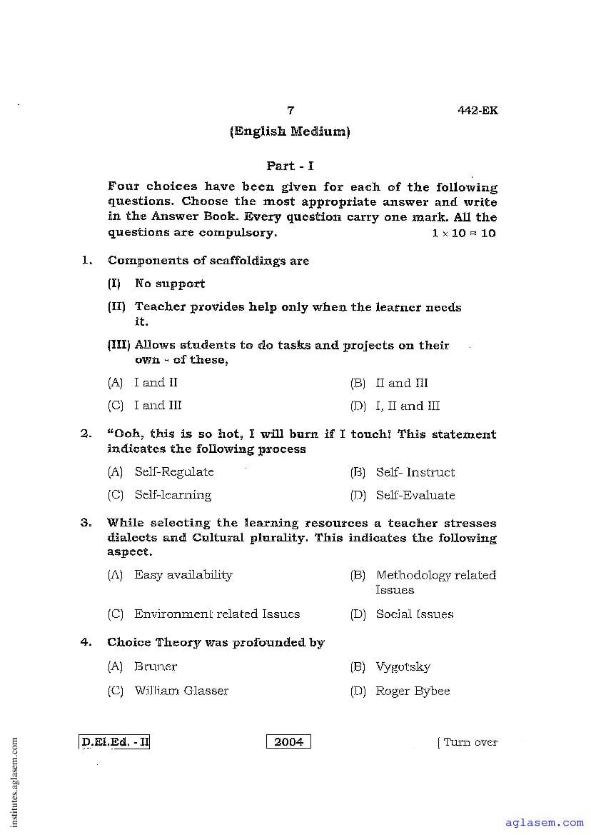 - Karnataka D.El.Ed 2nd year Question Paper English