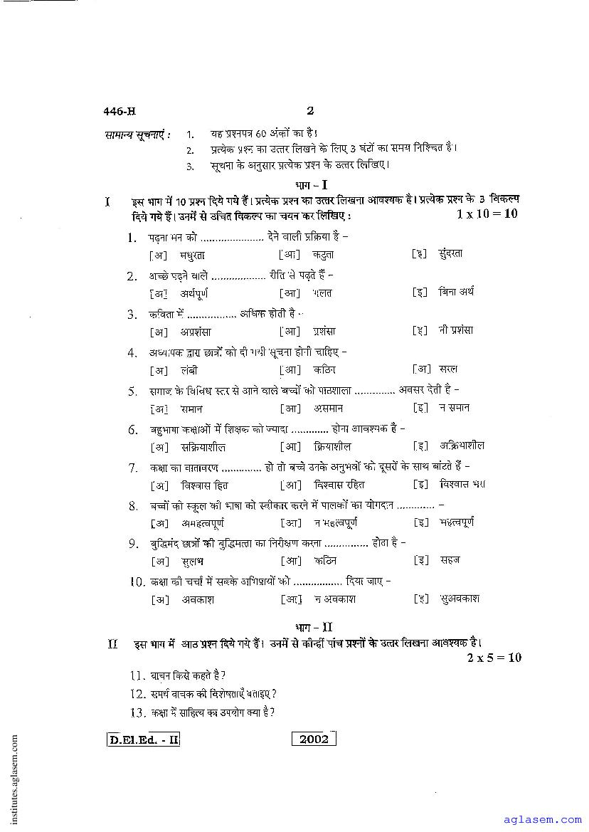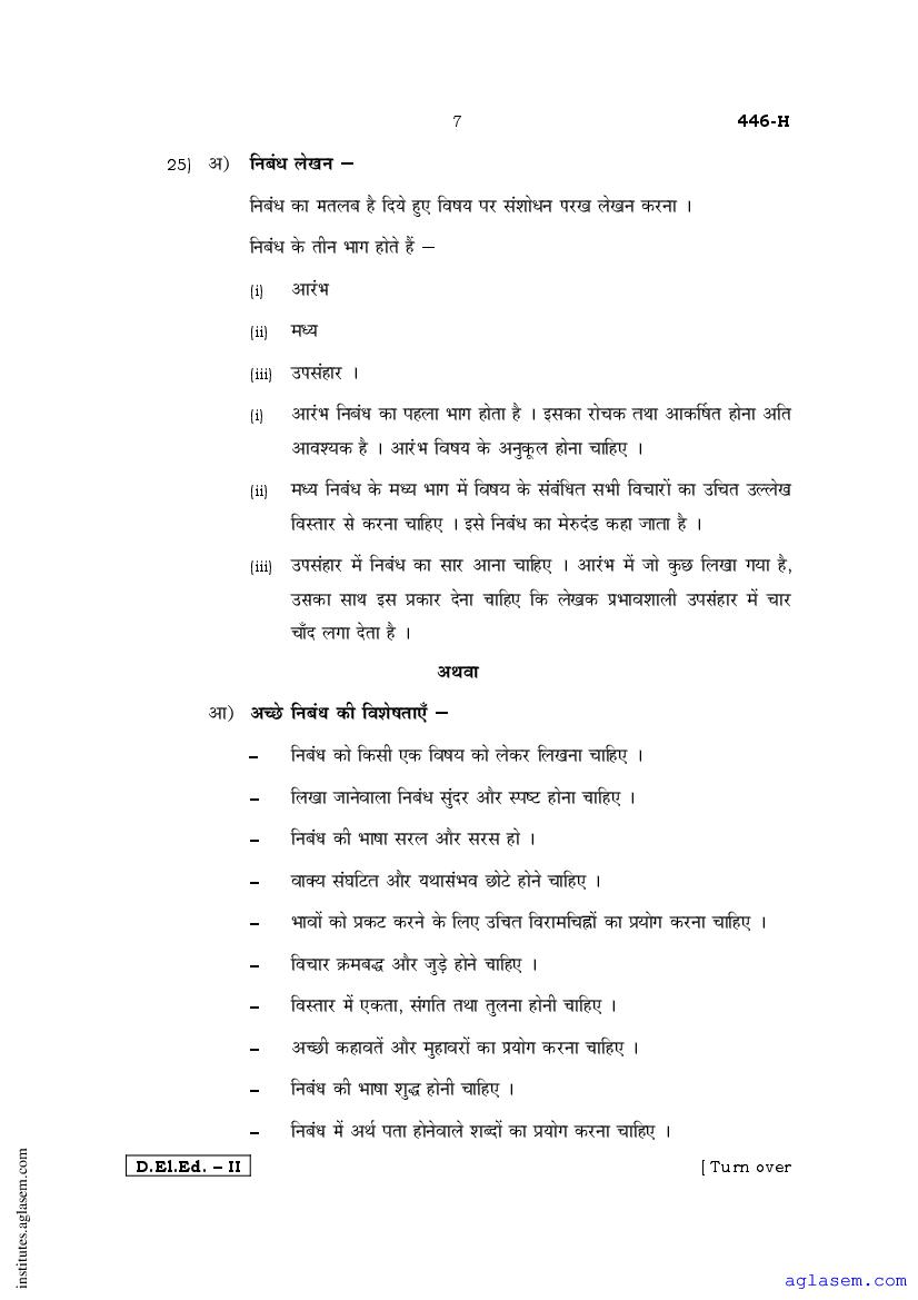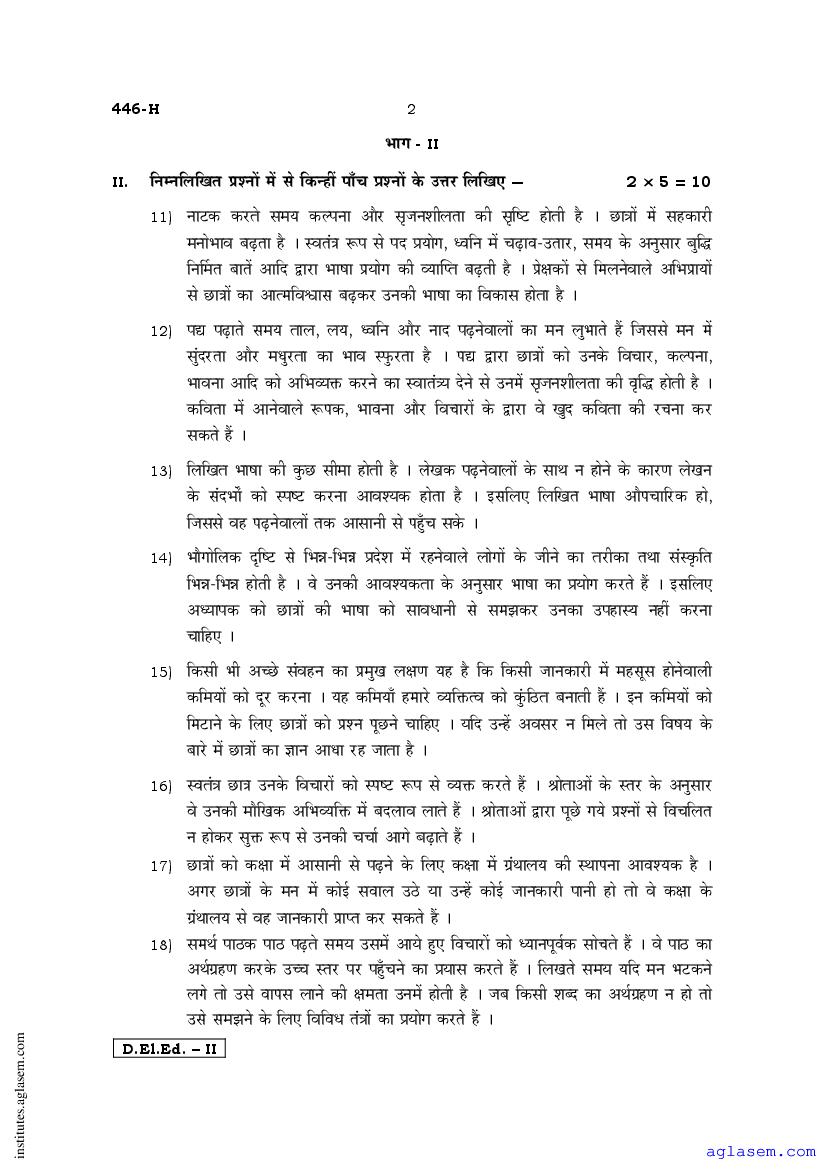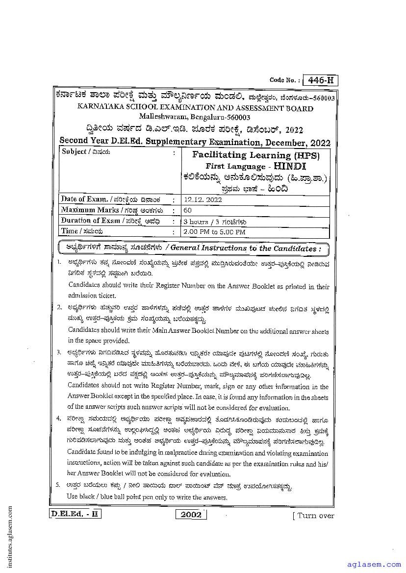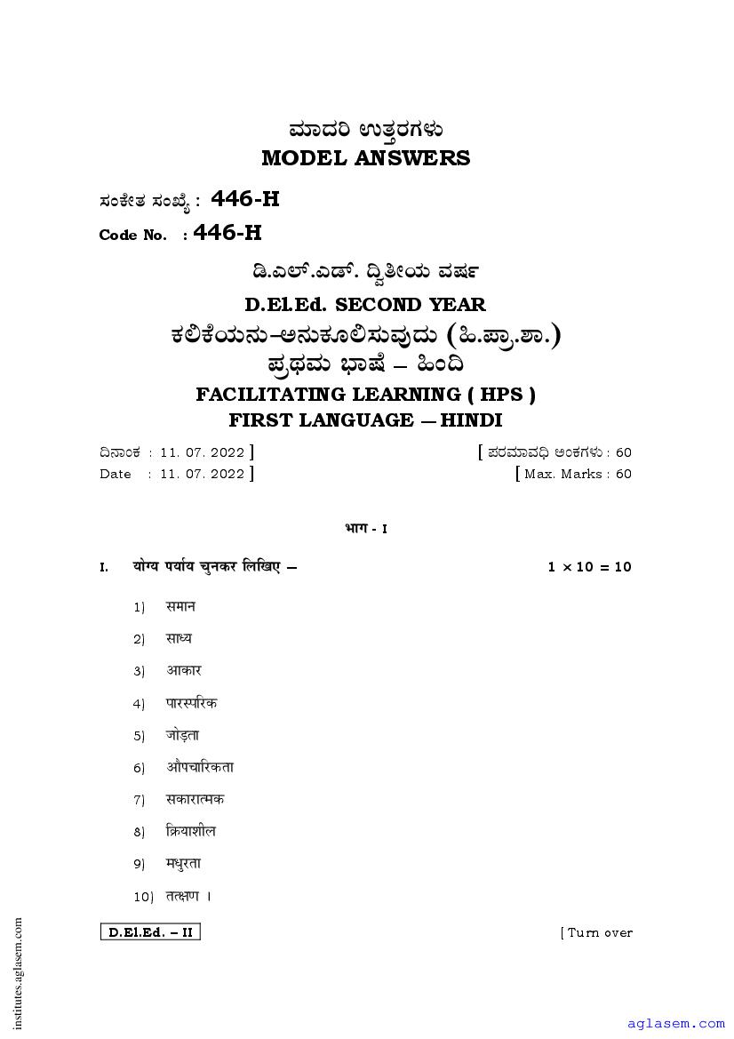 - Karnataka D.El.Ed 2nd year Question Paper Hindi