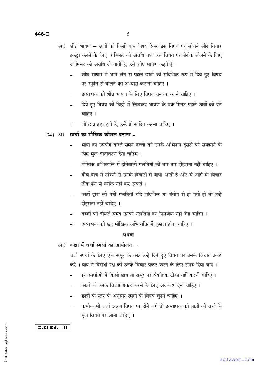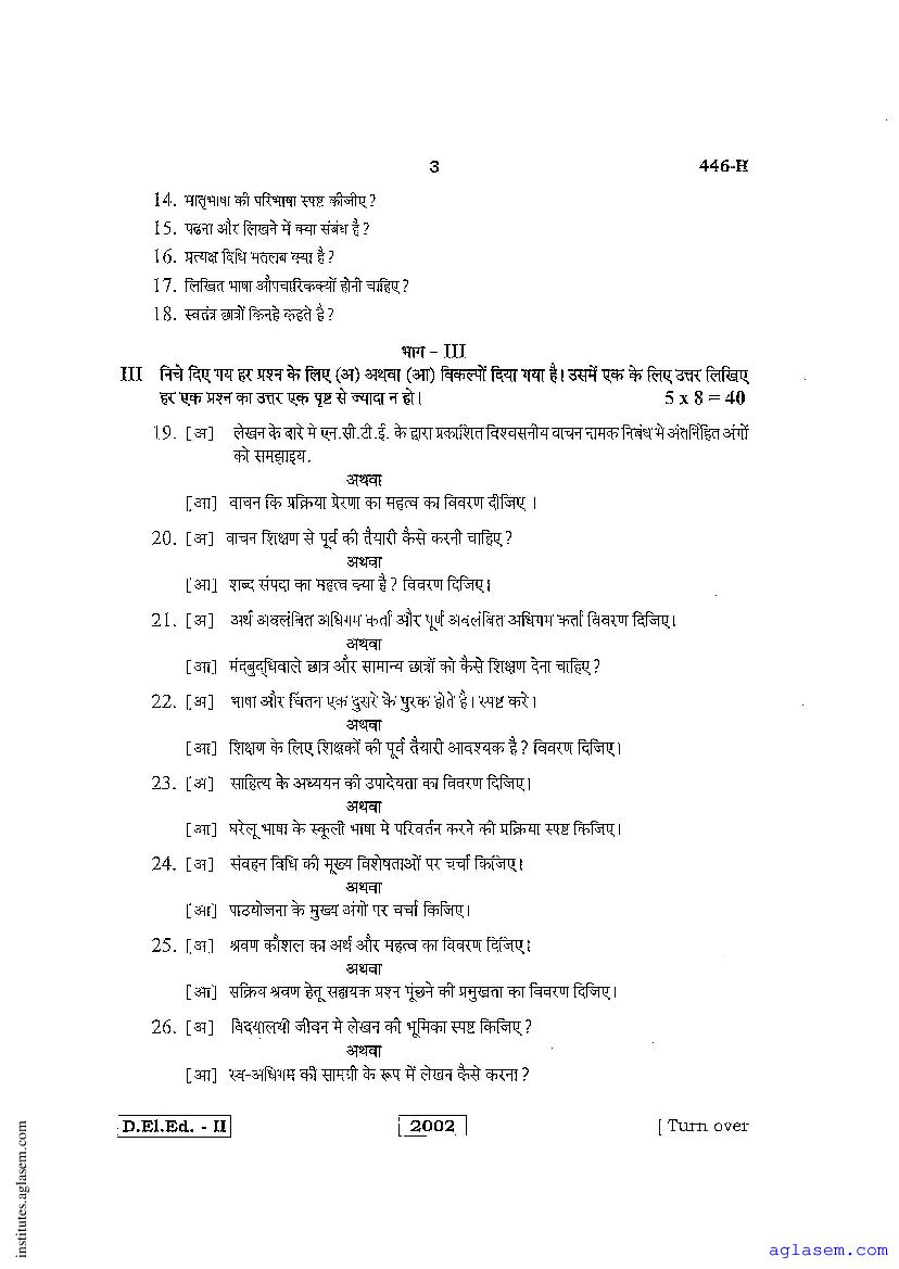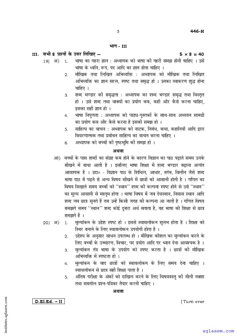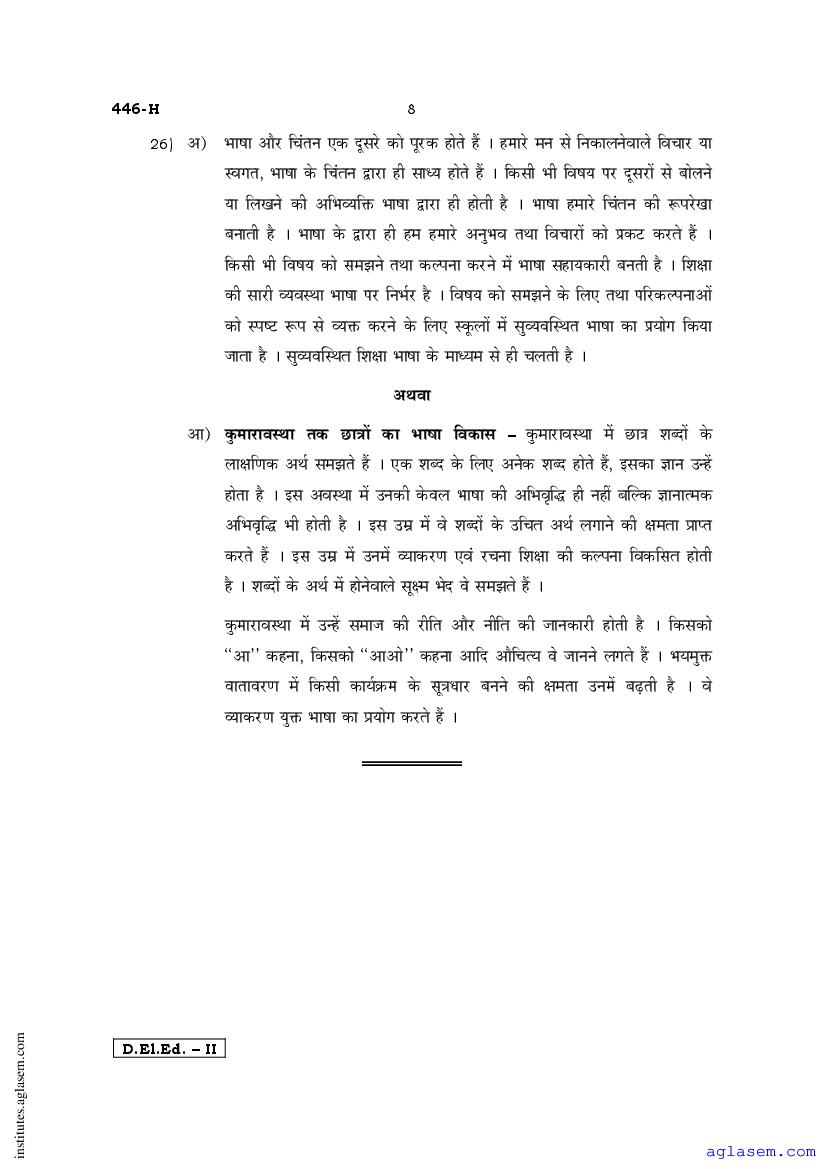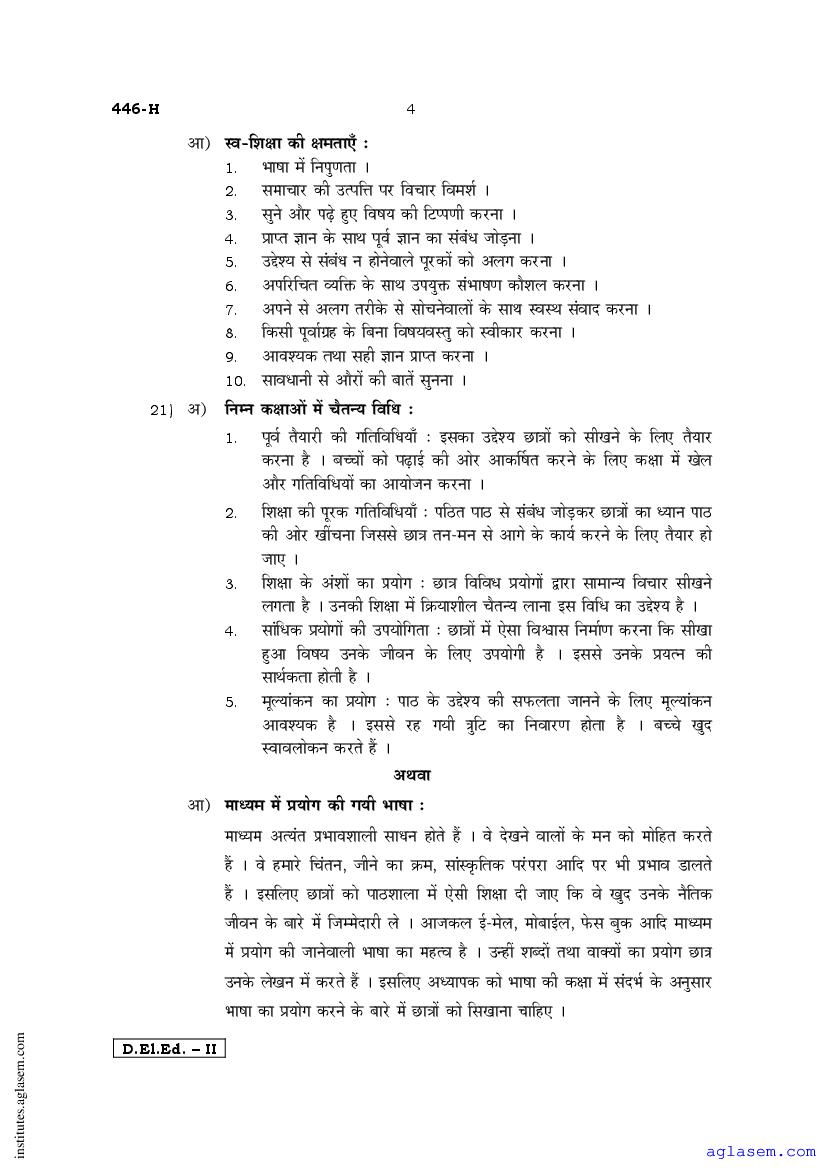 - Karnataka D.El.Ed 2nd year Question Paper Hindi