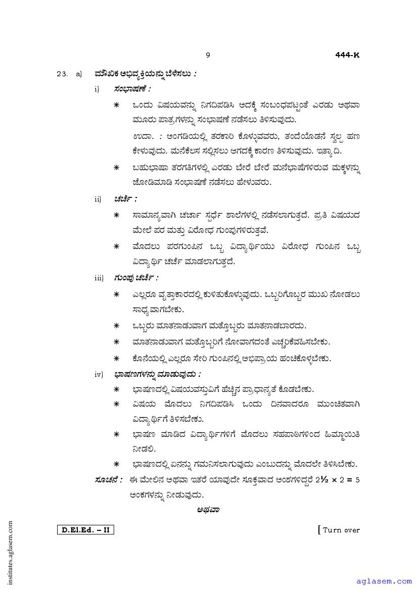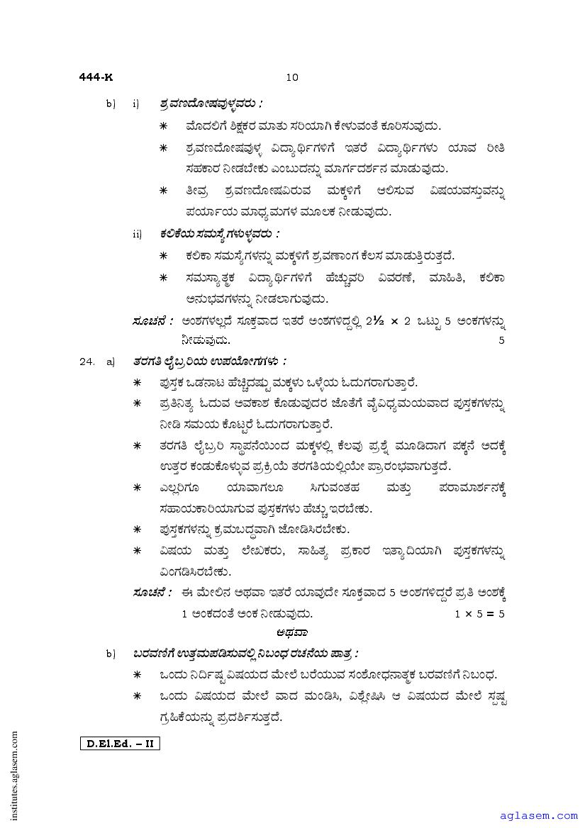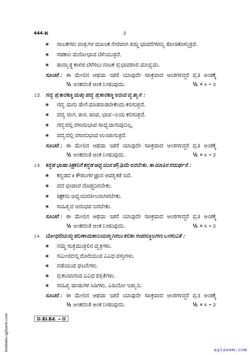 - Karnataka D.El.Ed 2nd year Question Paper Kannada