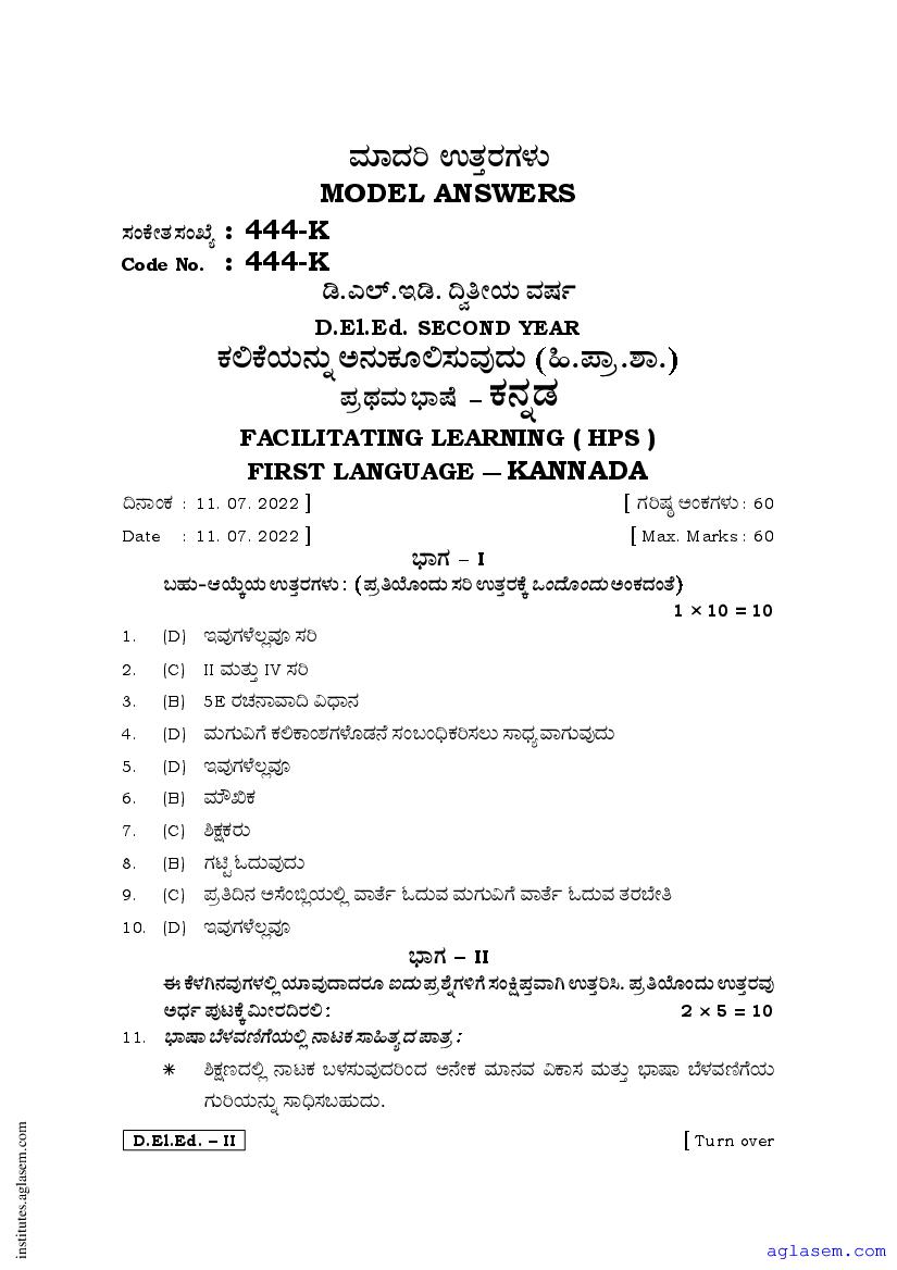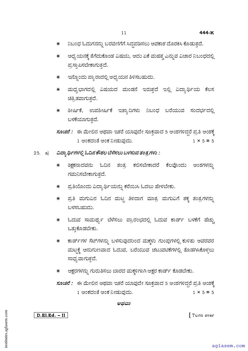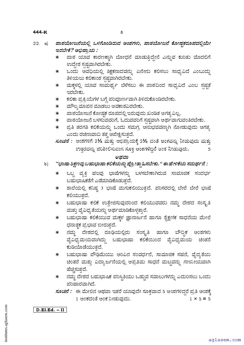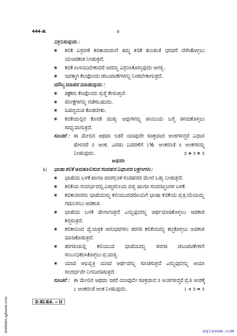 - Karnataka D.El.Ed 2nd year Question Paper Kannada