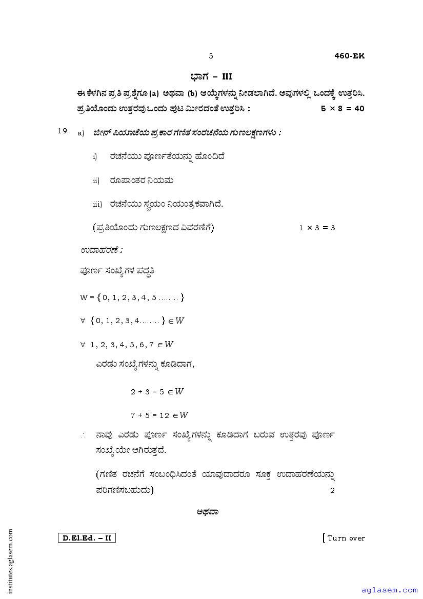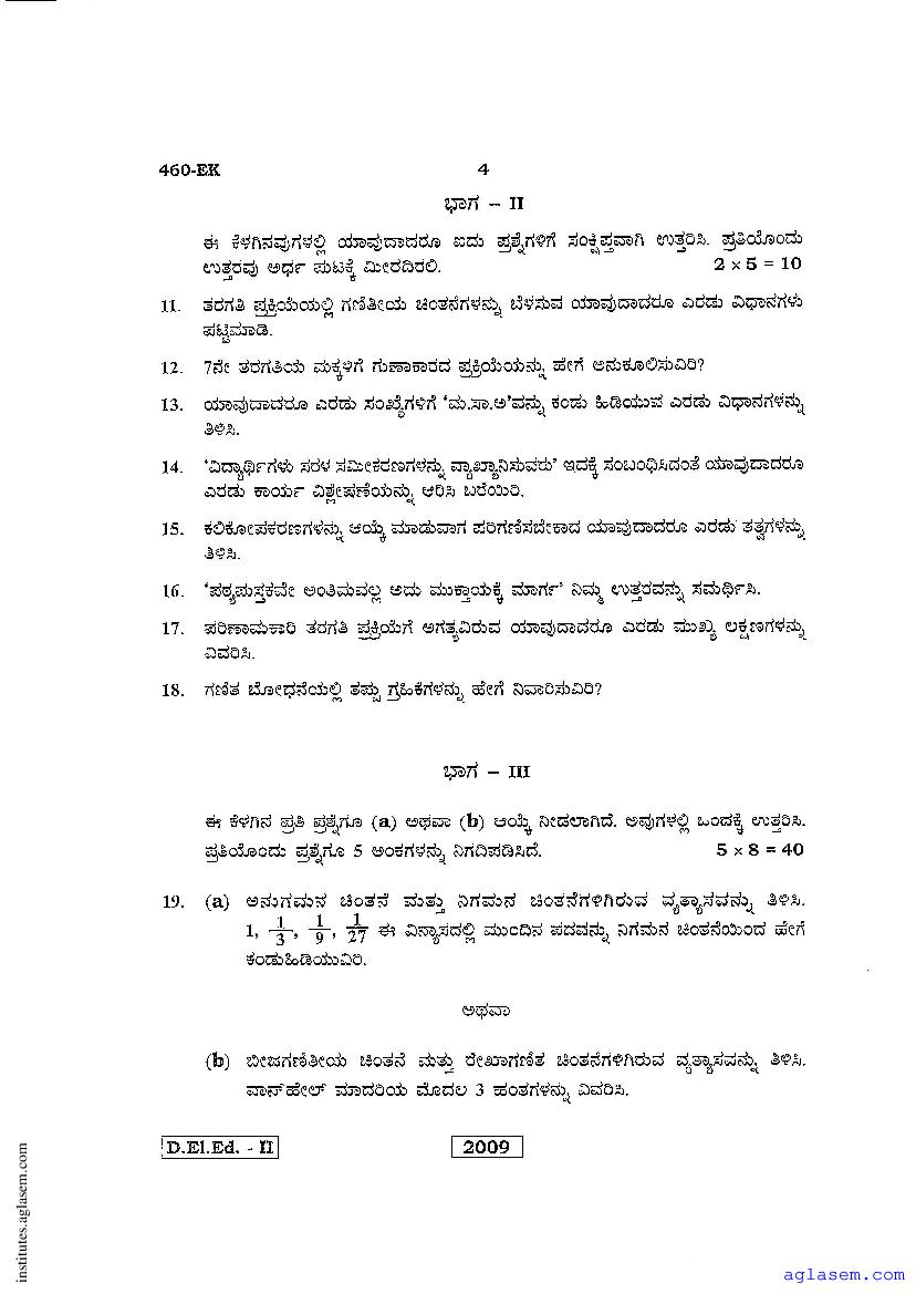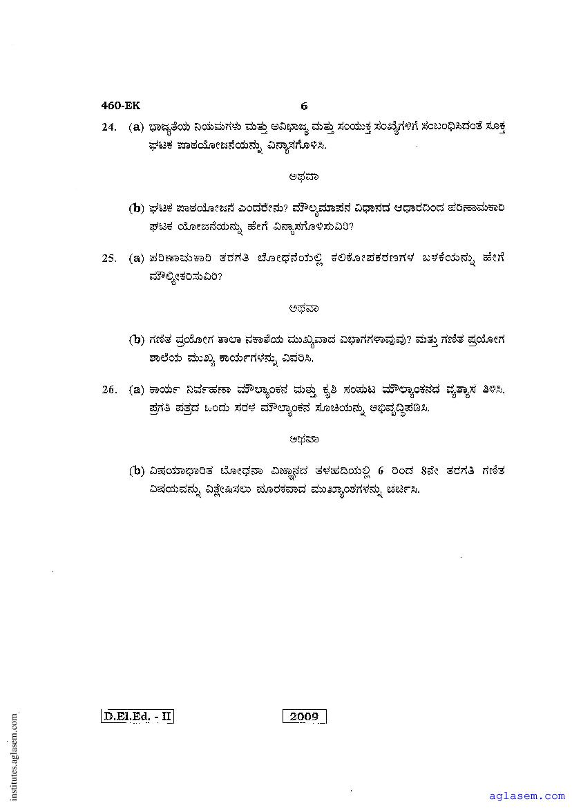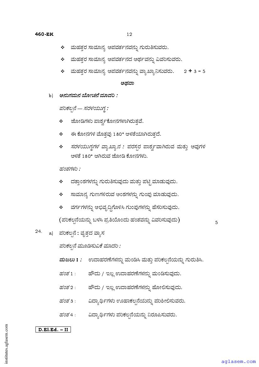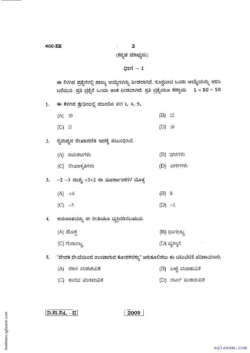- Karnataka D.El.Ed 2nd year Question Paper Maths