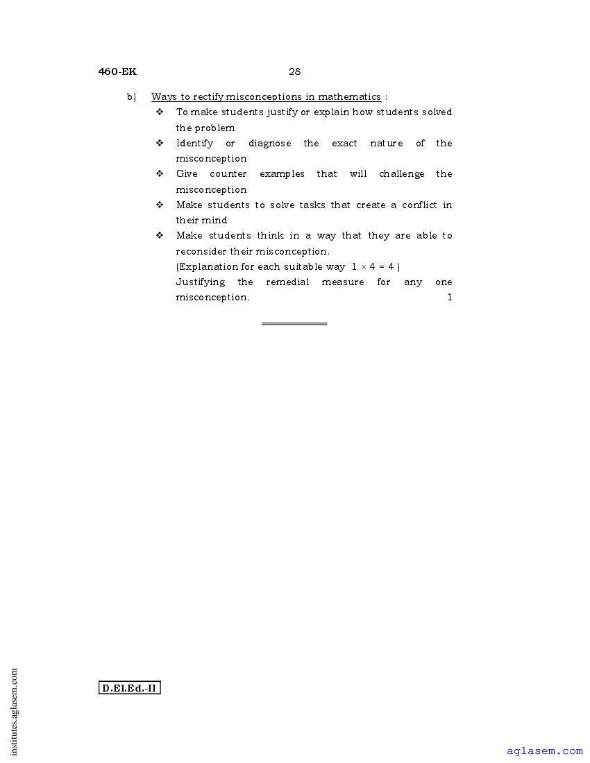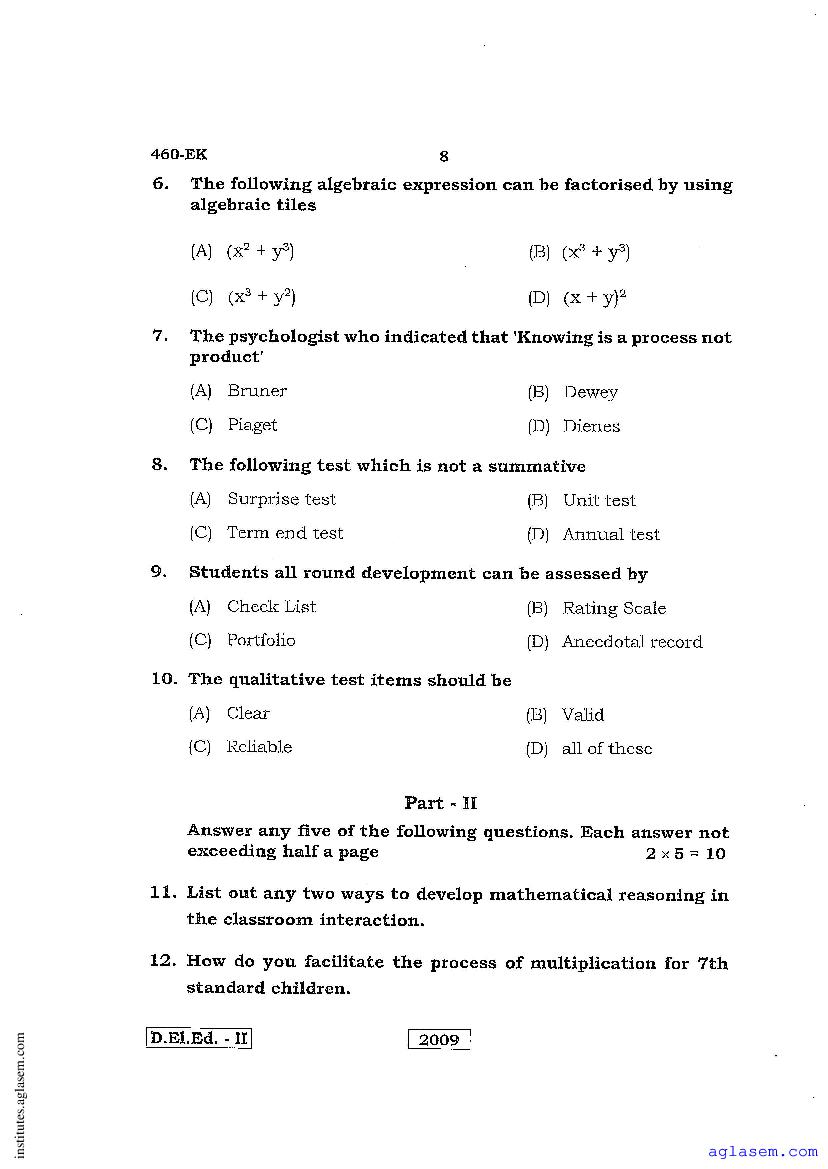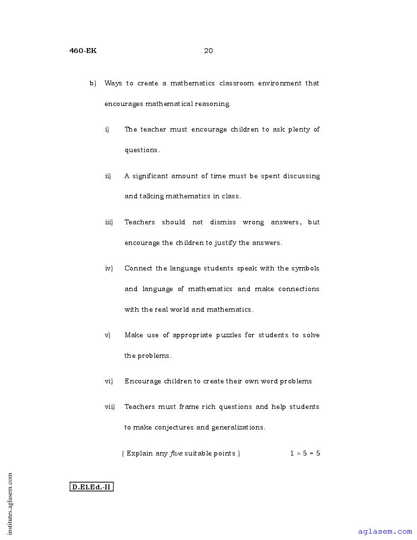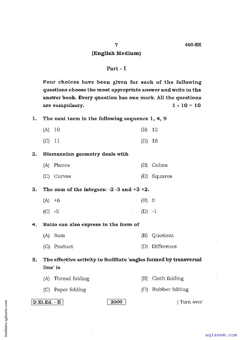 - Karnataka D.El.Ed 2nd year Question Paper Maths