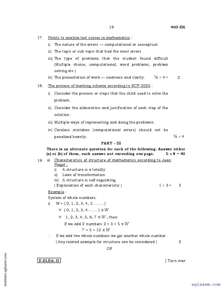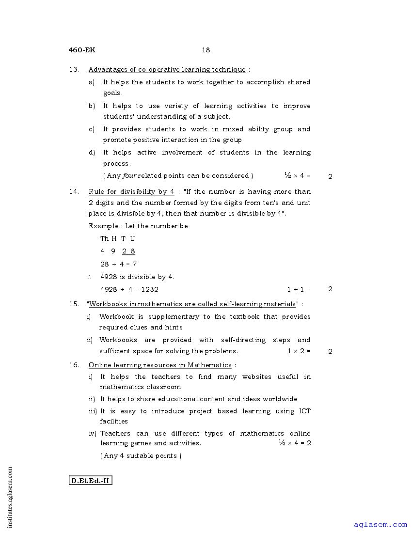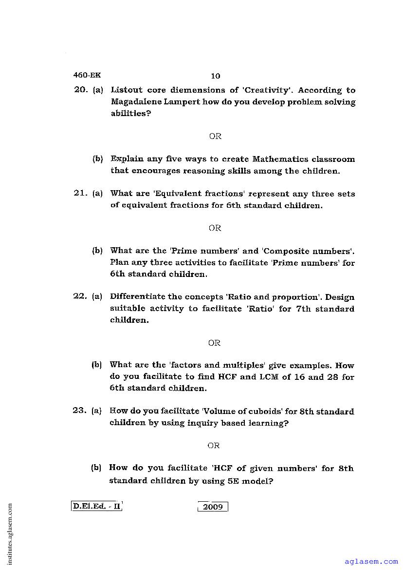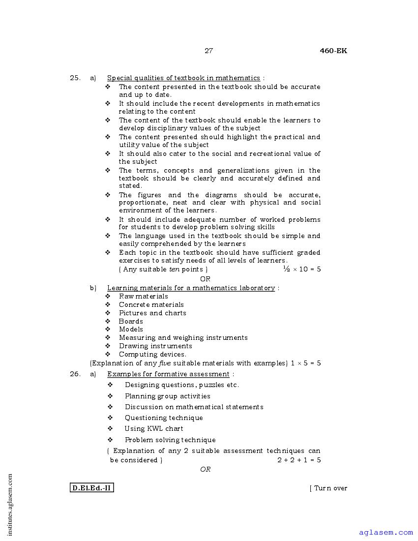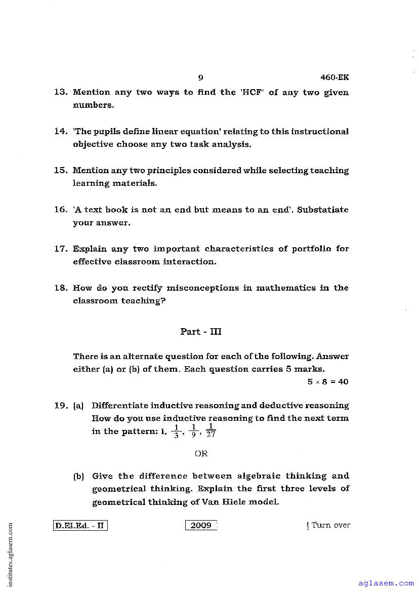 - Karnataka D.El.Ed 2nd year Question Paper Maths