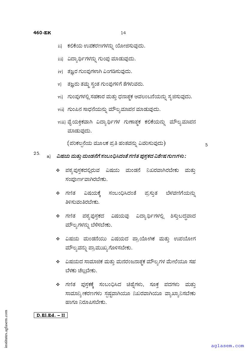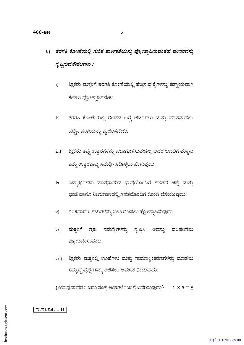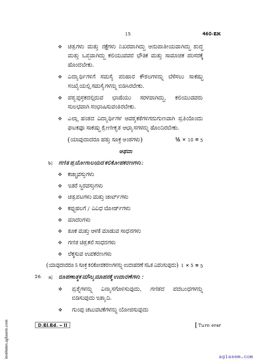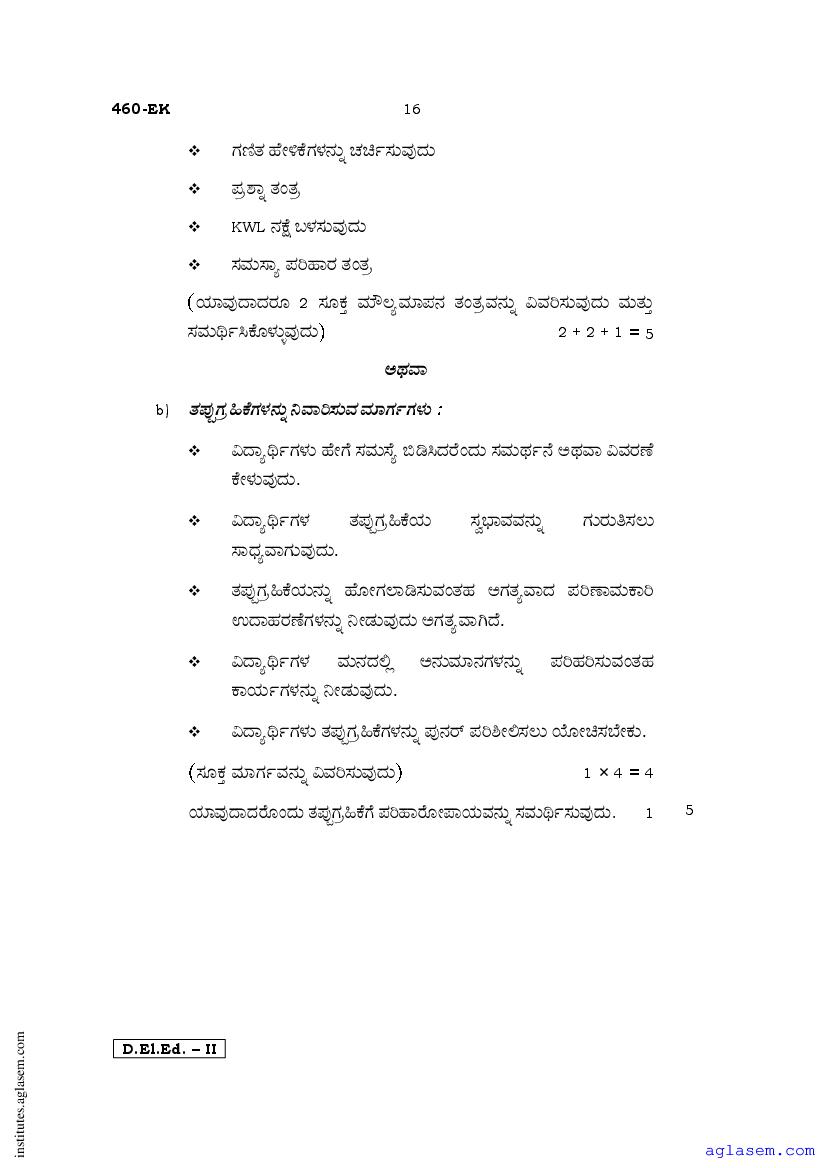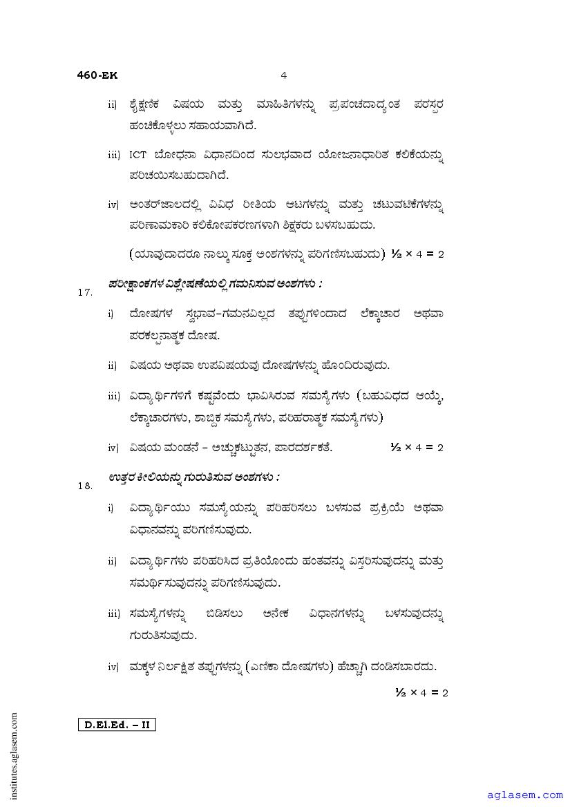 - Karnataka D.El.Ed 2nd year Question Paper Kannada