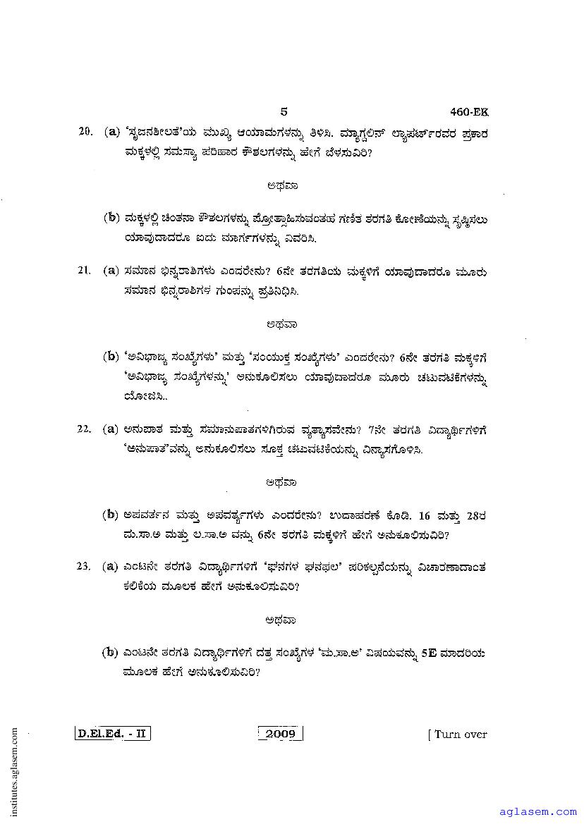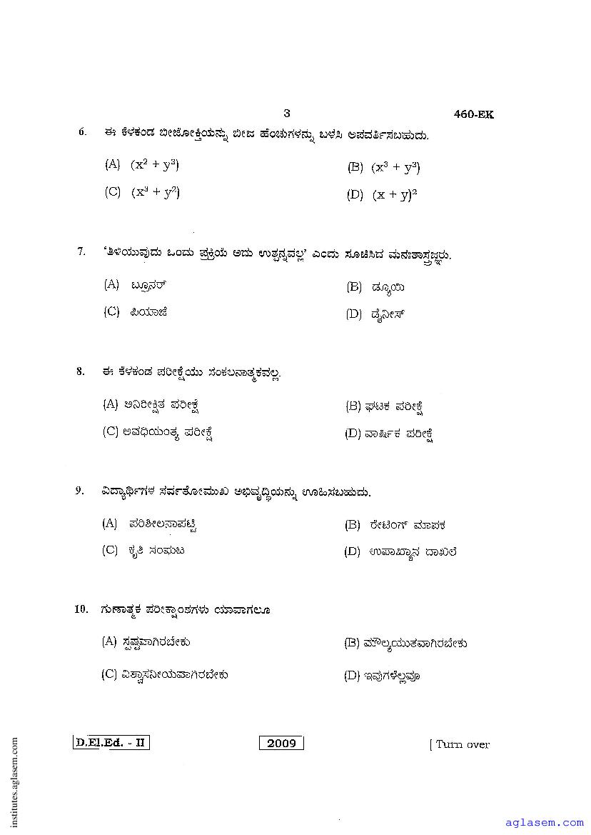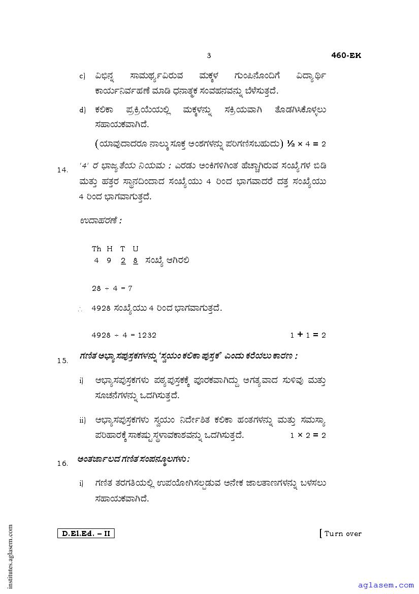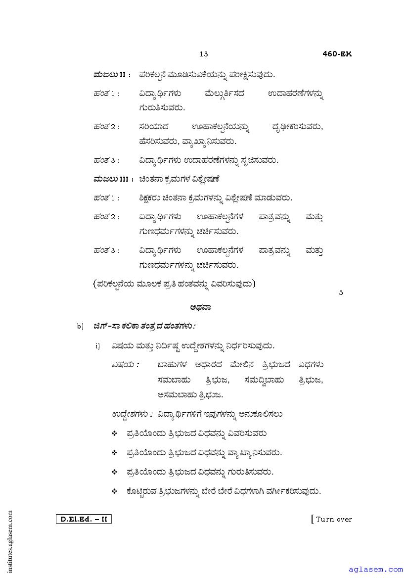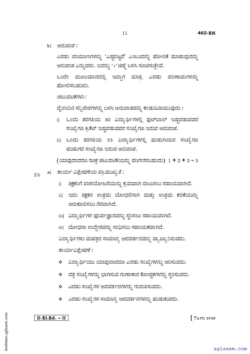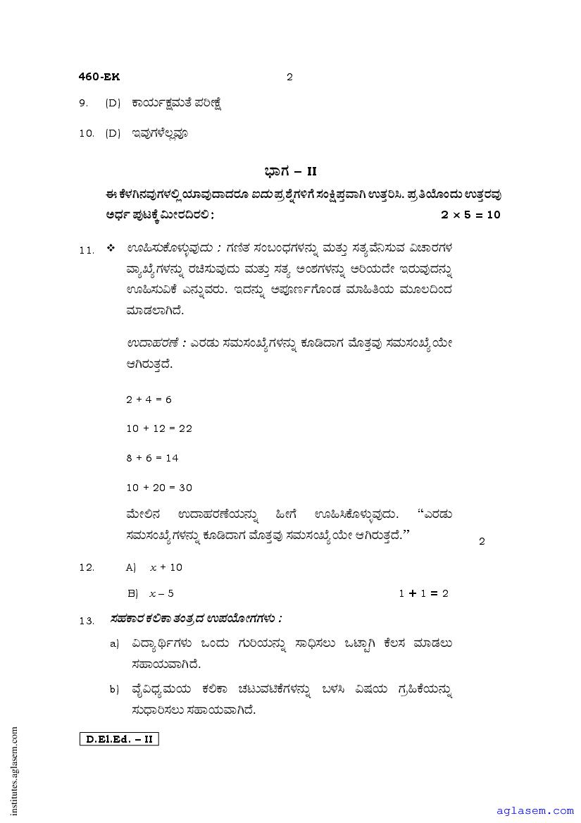 - Karnataka D.El.Ed 2nd year Question Paper Kannada