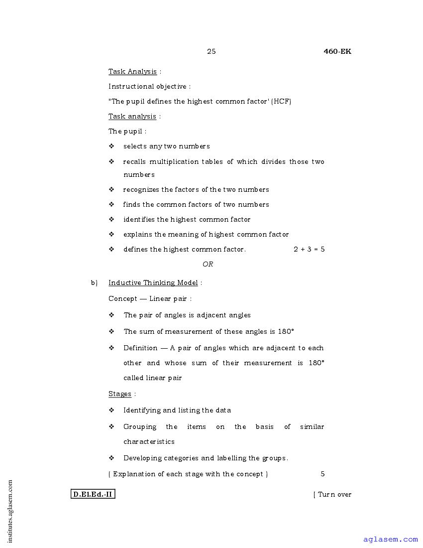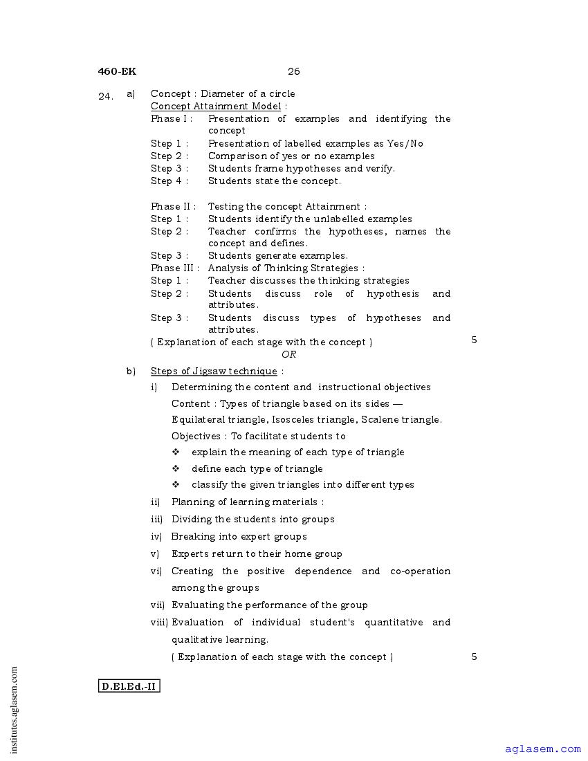 - Karnataka D.El.Ed 2nd year Question Paper Telugu