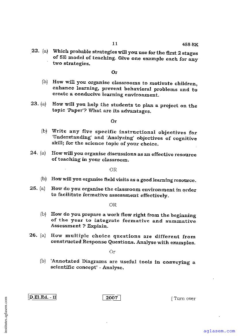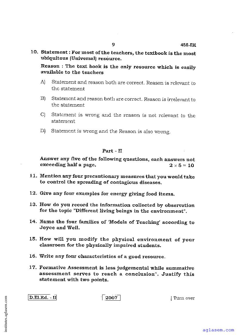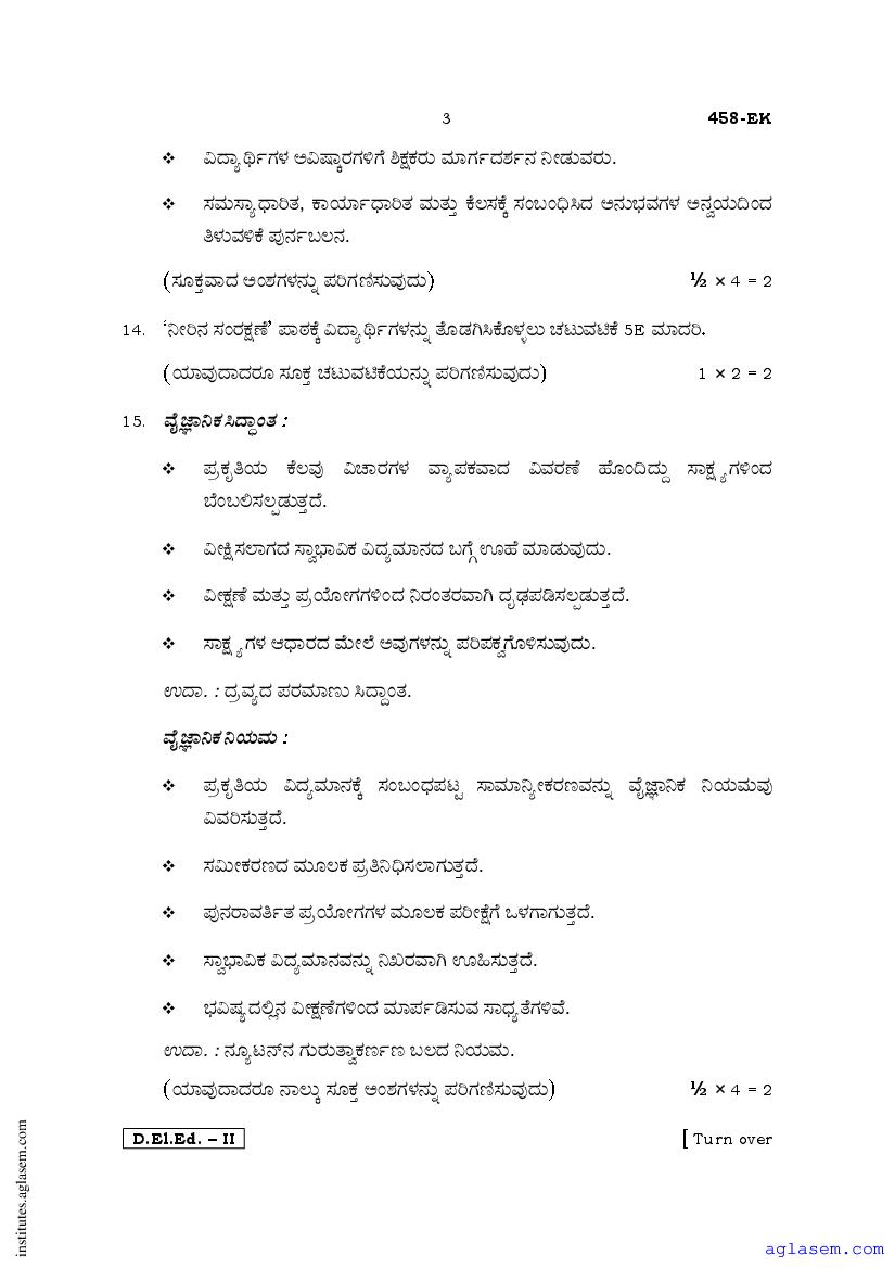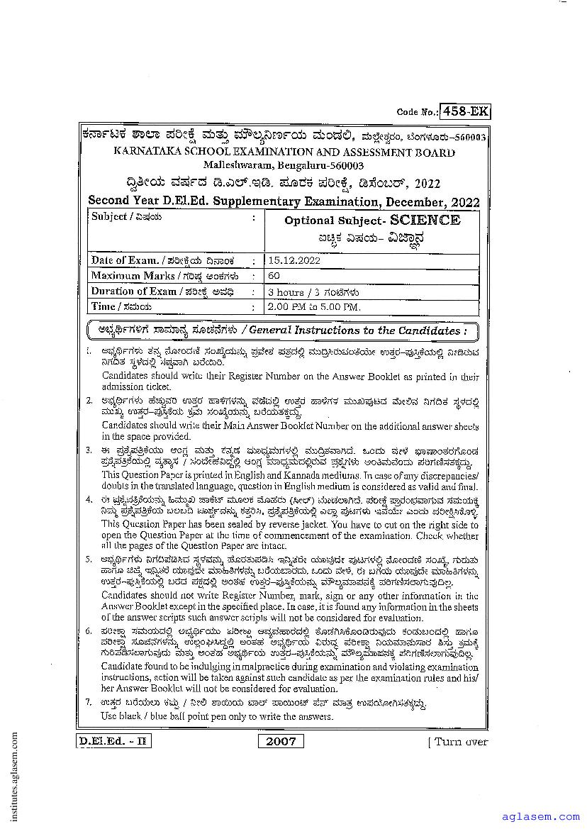 - Karnataka D.El.Ed 2nd year Question Paper Science