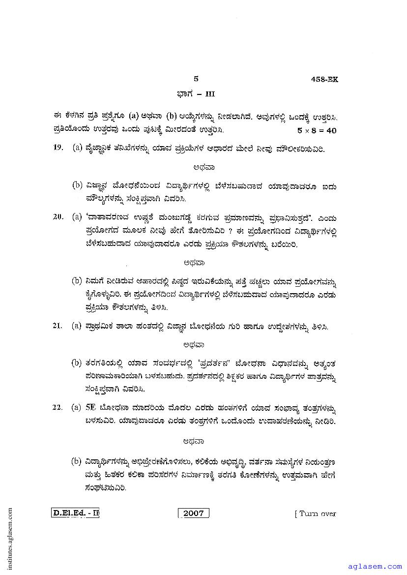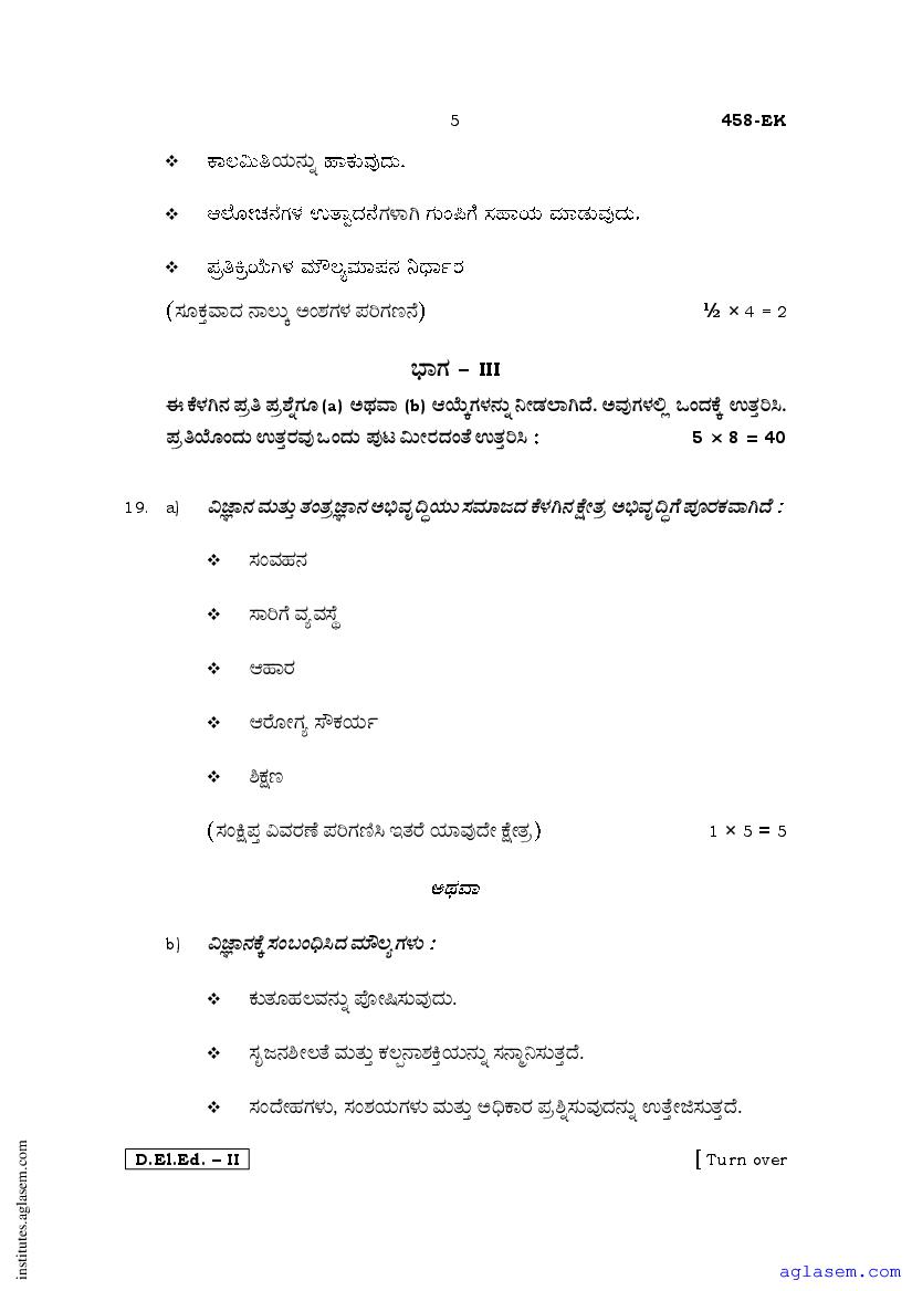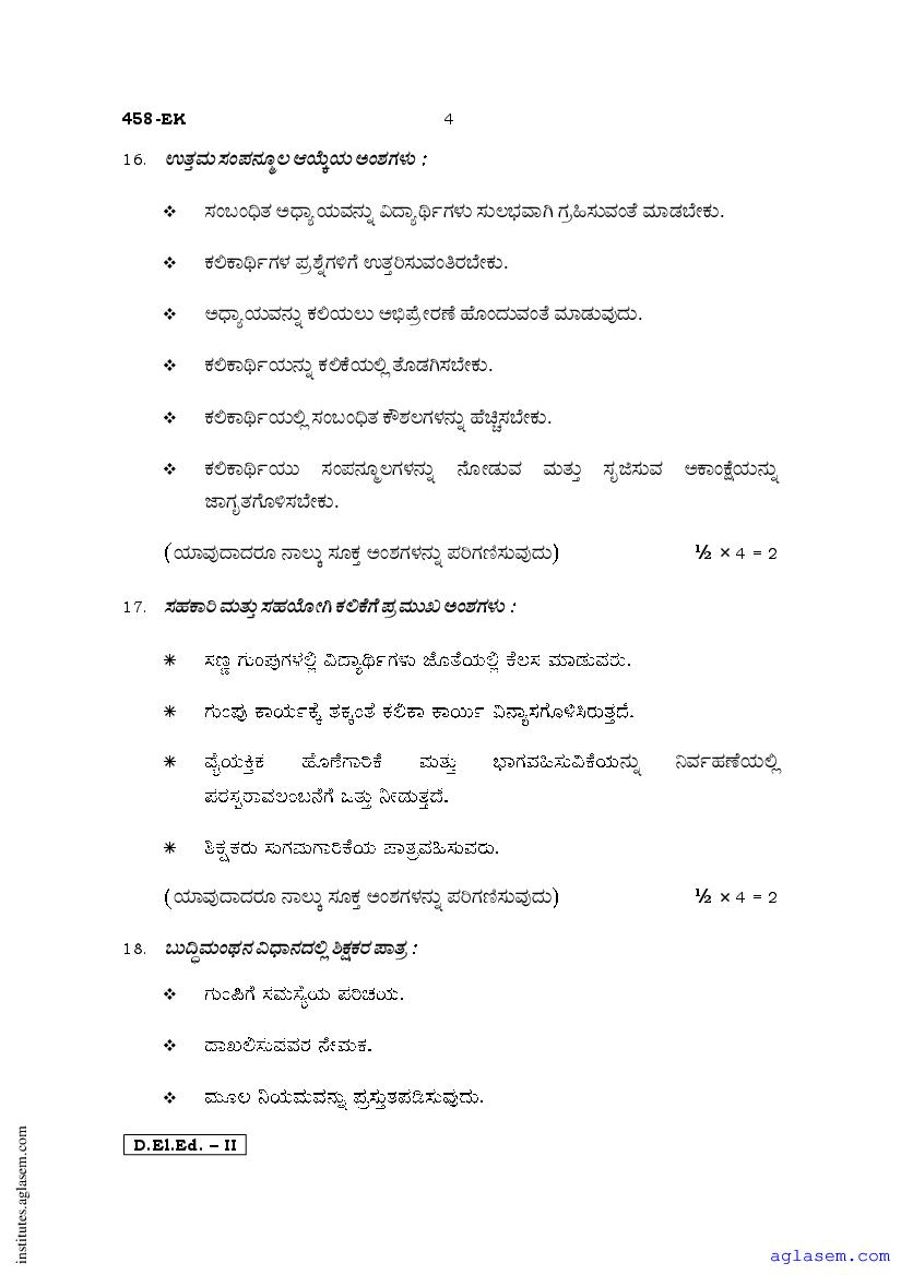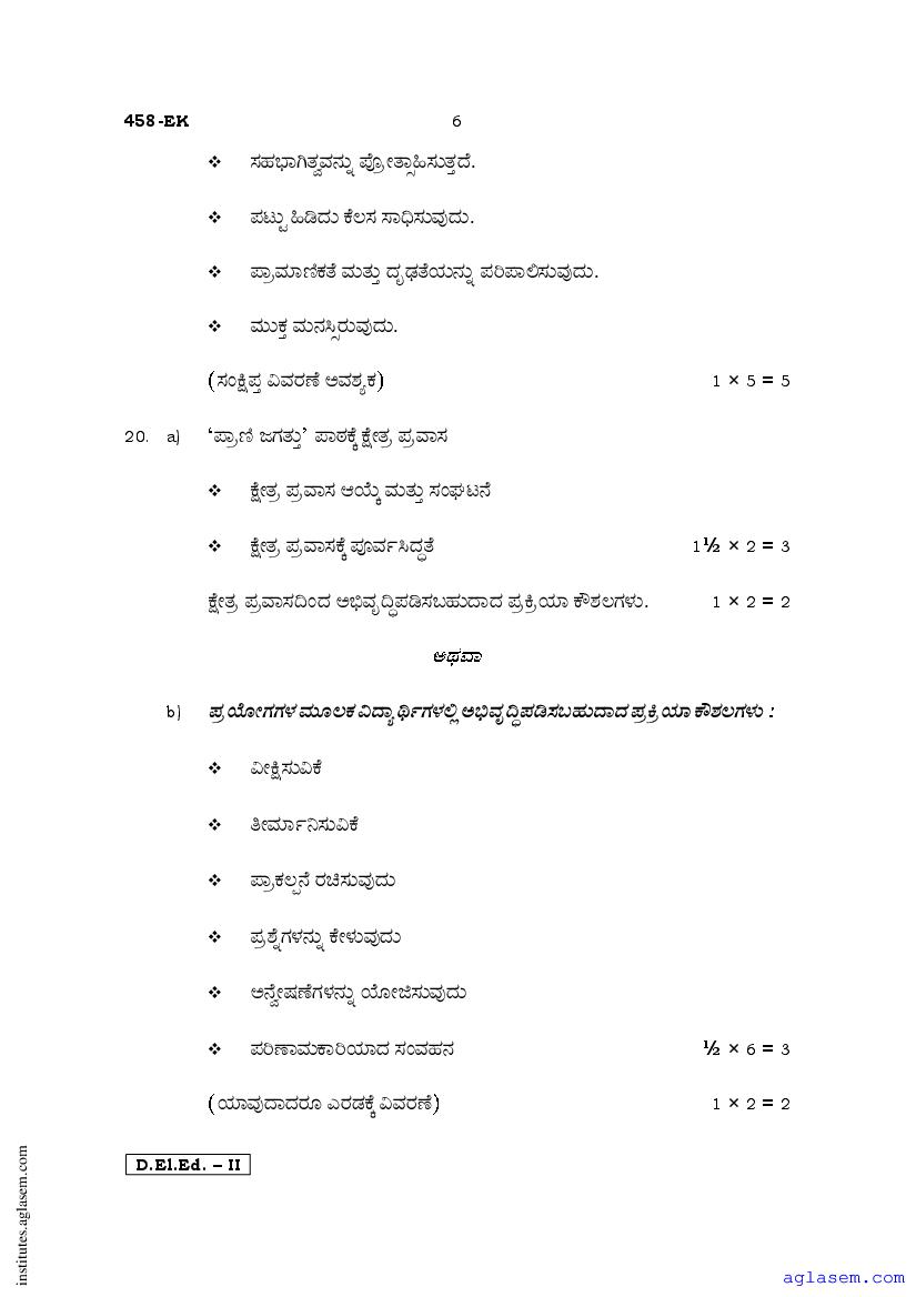 - Karnataka D.El.Ed 2nd year Question Paper Kannada