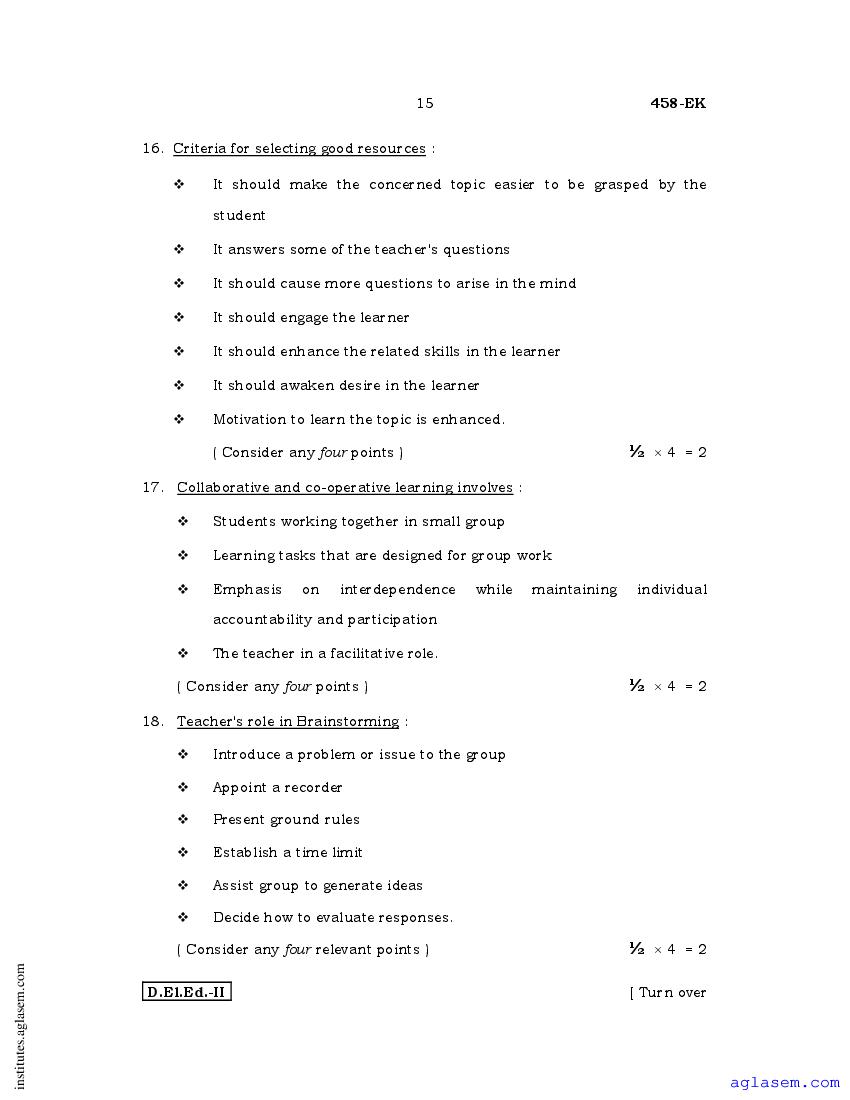 - Karnataka D.El.Ed 2nd year Question Paper Telugu